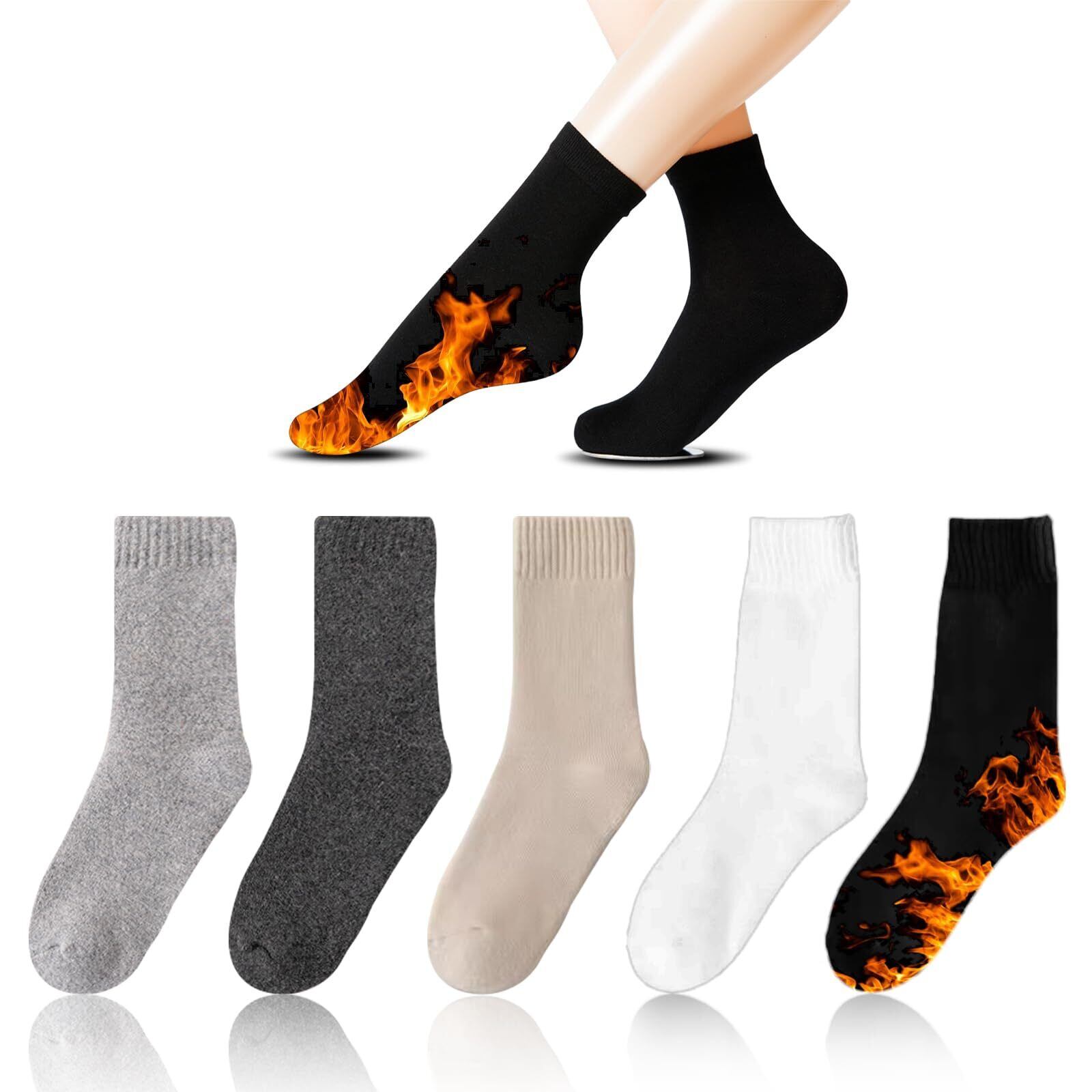 厚手で暖かい靴下: 5足の女性用ホットソックスは、靴下 レディース、厚い、柔らかい、快適、通気性、耐摩耗性、吸汗性に優れた洗濯綿とポリエステルを混紡したもの、 レディースの厚手の靴下は各ペアが厚く、履く だけ で 暖かい 靴下、寒い冬に十分暖かいです、フリーサイズでほとんどの レディースにフィットします