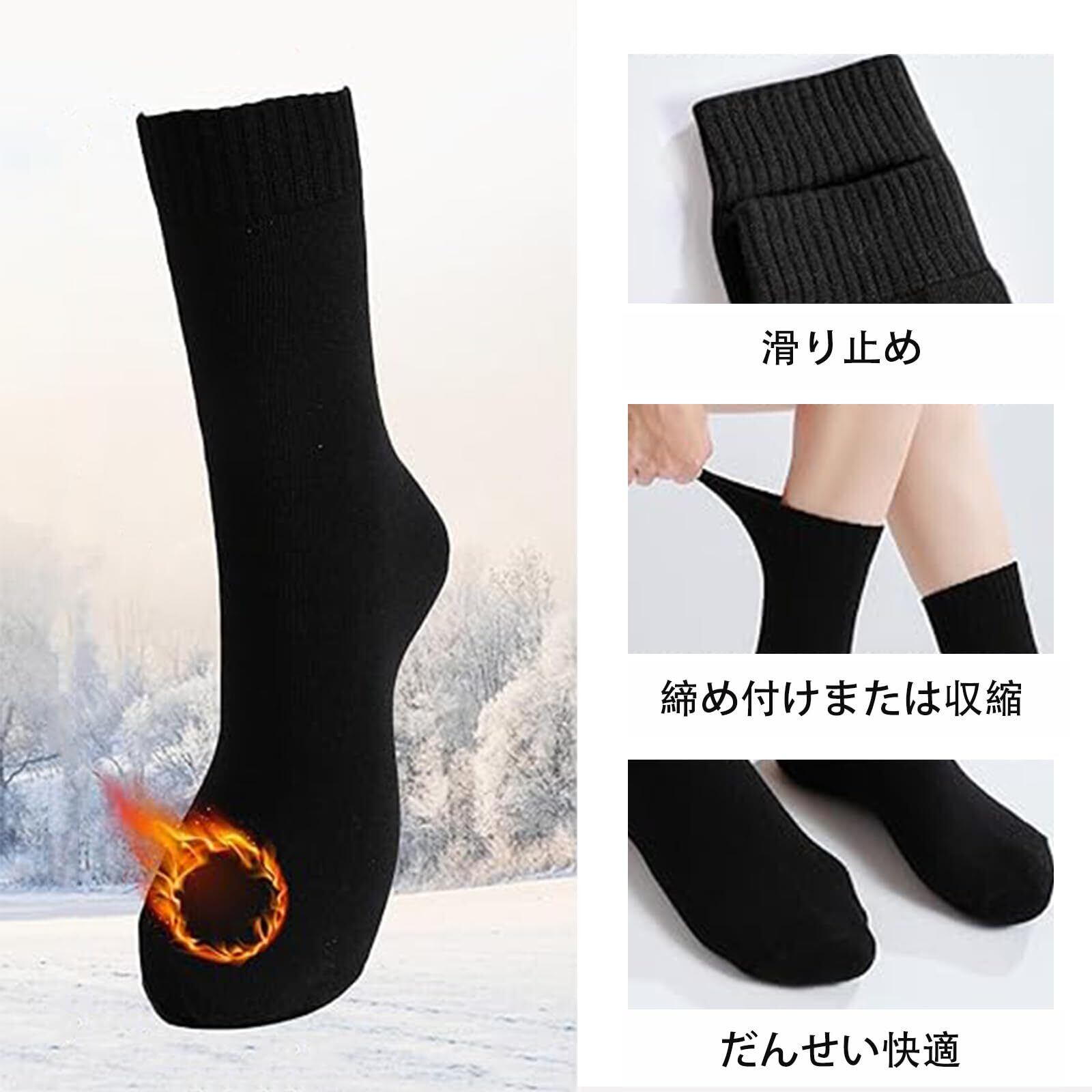 靴下 レディース 暖かい 冬 5足セット あったか靴下 靴下 レディース 黒 暖かい綿の靴下 厚手 防寒 あったか お洒落 厚手 あったか 吸汗 耐久性 保温 登山 靴下 寒い冬を乗り切る ギフト(黒)