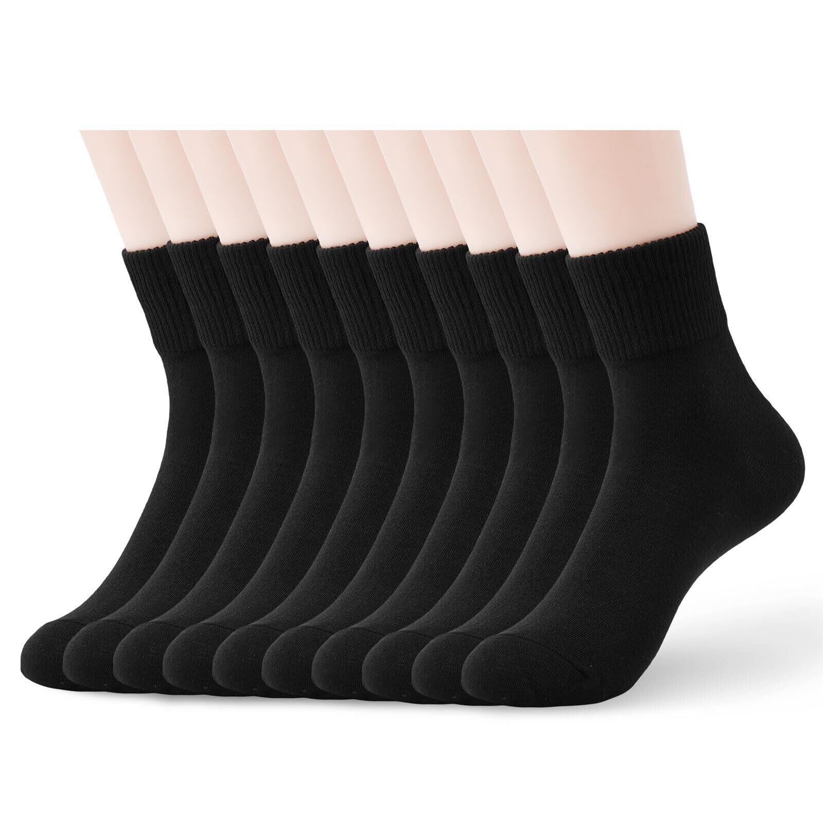 [Yazon] 靴下 レディース 綿 カラフルソックス/ 黒10セット おしゃれ女性用 くつした カジュアル コットンソックス 通気吸汗 スポーツ 室内 クルー丈靴下 中厚手 春夏秋冬用 通勤通学 婦人22-25cm(人気ギフト)