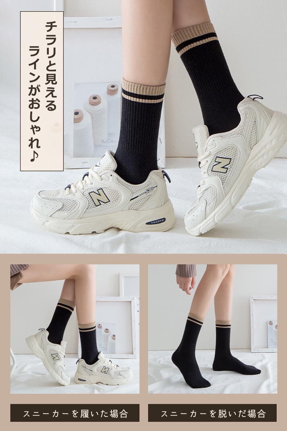 クルー丈なのでスニーカーやパンプス等様々なシューズに合わせやすいです