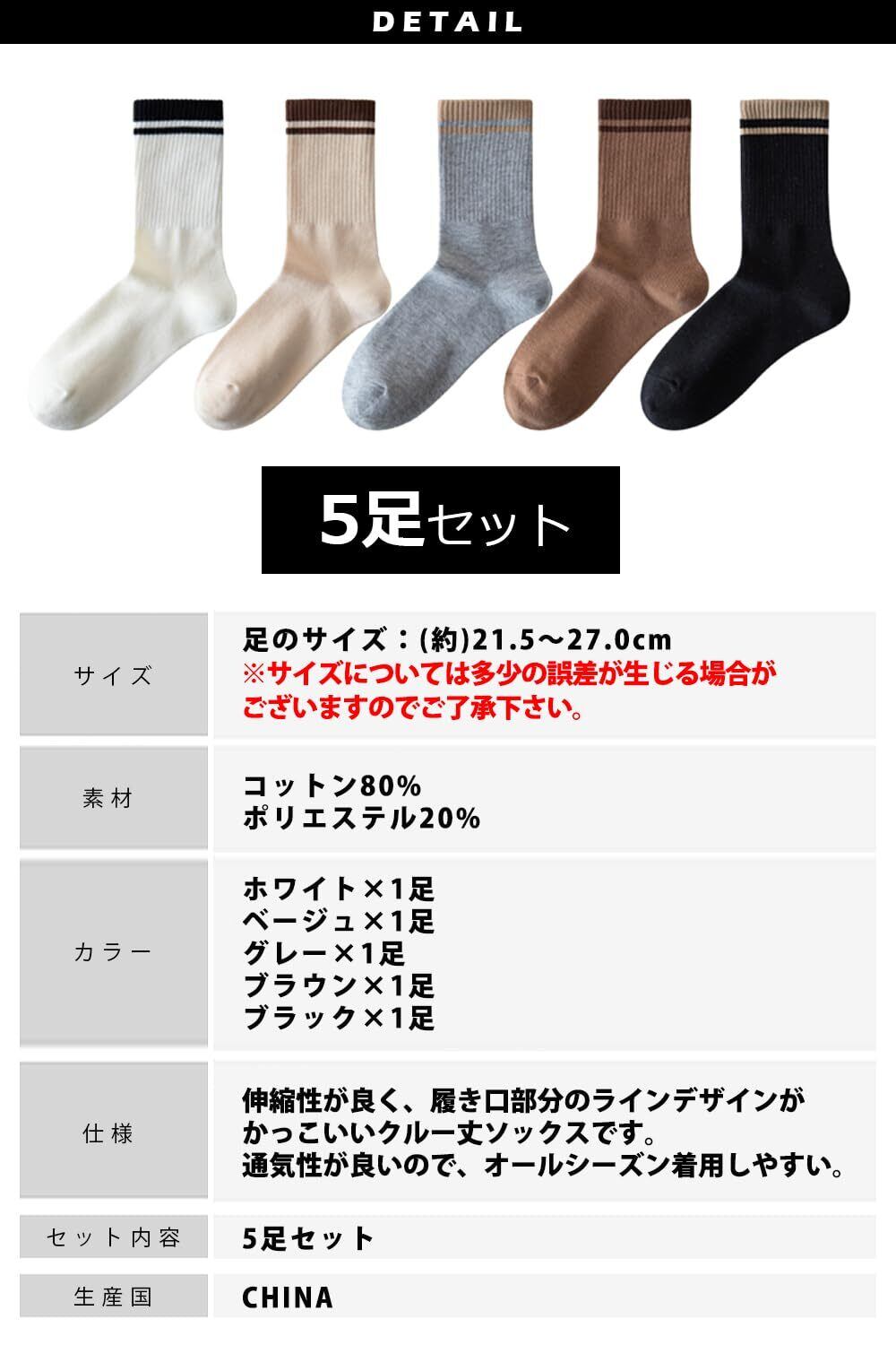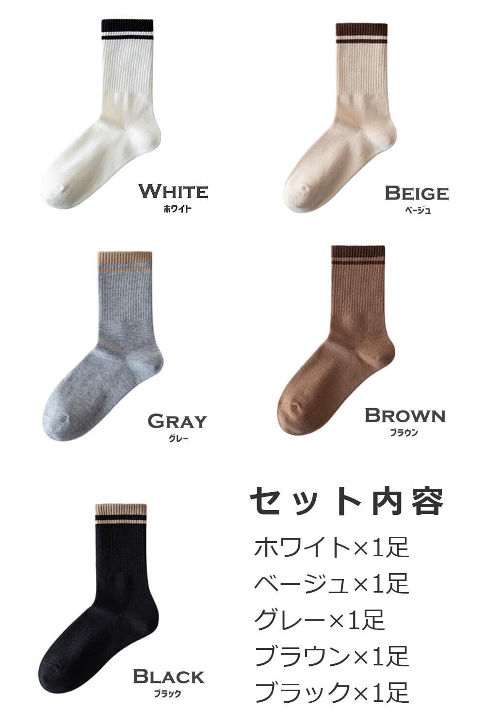 【カラー】 5足セット ホワイト×1、ベージュ×1、グレー×1、ブラウン×1、ブラック×1 10足セット ホワイト×2、ベージュ×2、グレー×2、ブラウン×2、ブラック×2 【素材】 ポリエステル20%、コットン80%