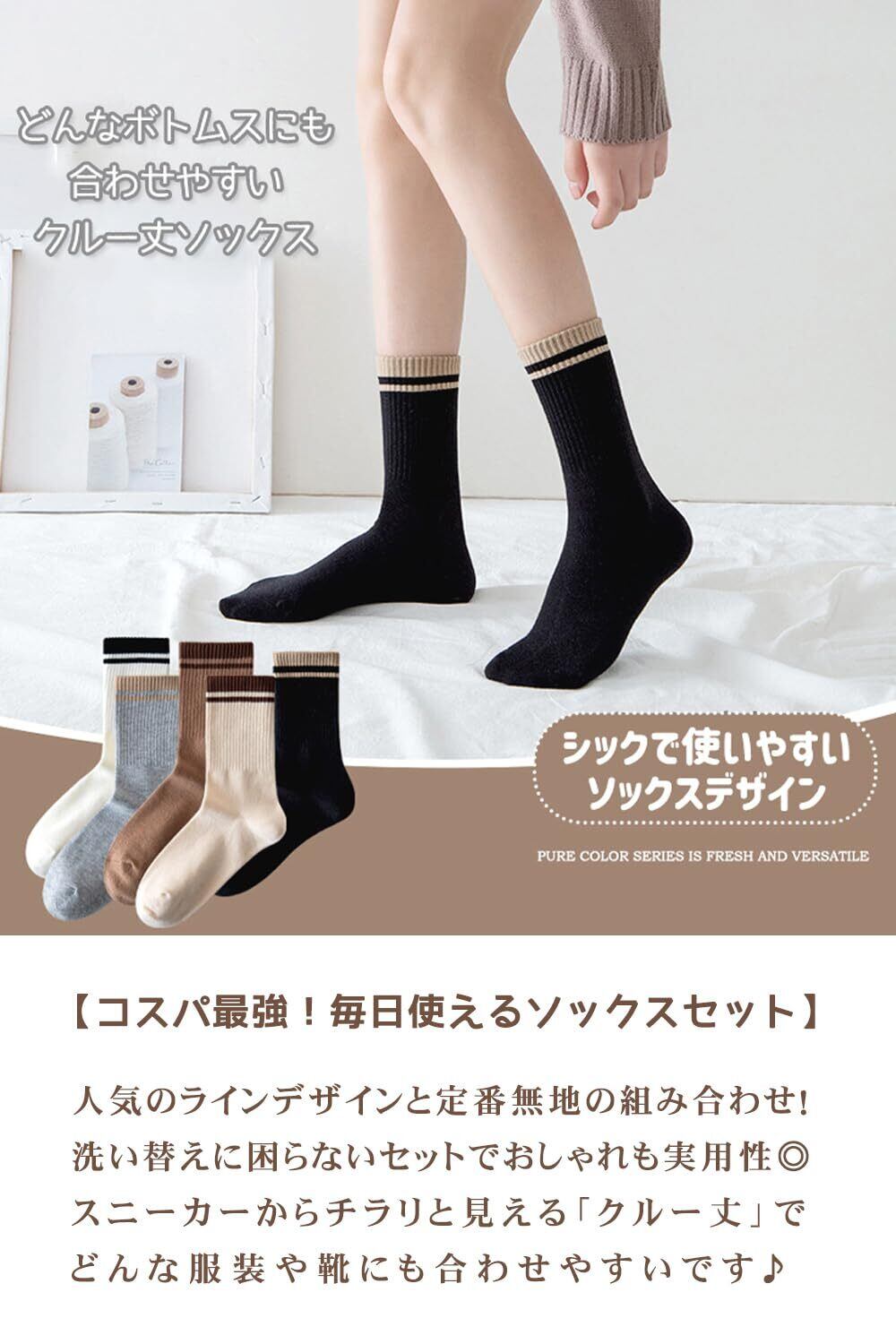 【ポイント1 足首のラインデザインがおしゃれ】 足首のラインデザインがさりげなくておしゃれです シックなカラーですので幅広い年齢の方におススメです 【ポイント2 オールシーズン使いやすいデザイン】 クルー丈なのでスニーカーやパンプス等様々なシューズに合わせやすいです ボトムスも選ばないのでどんなコーデにも合わせやすいです
