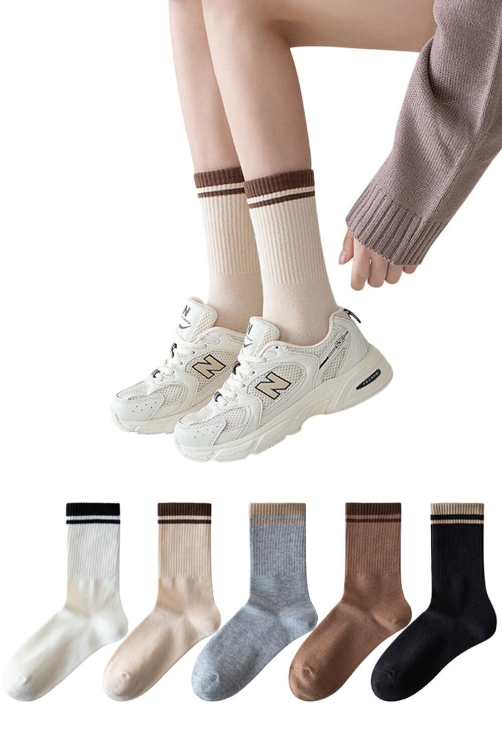 [back under] 靴下 レディース ソックス 5足 10足 セット おしゃれ 可愛い ライン クルー丈 女性 春 夏 秋 冬 オールシーズン クルーソックス