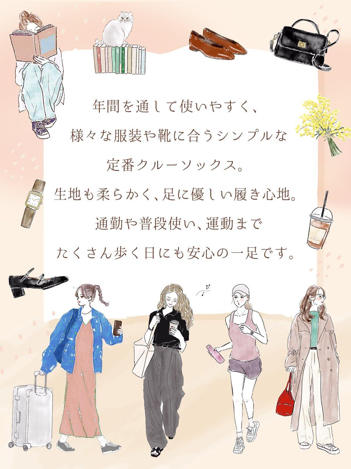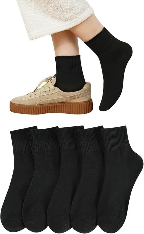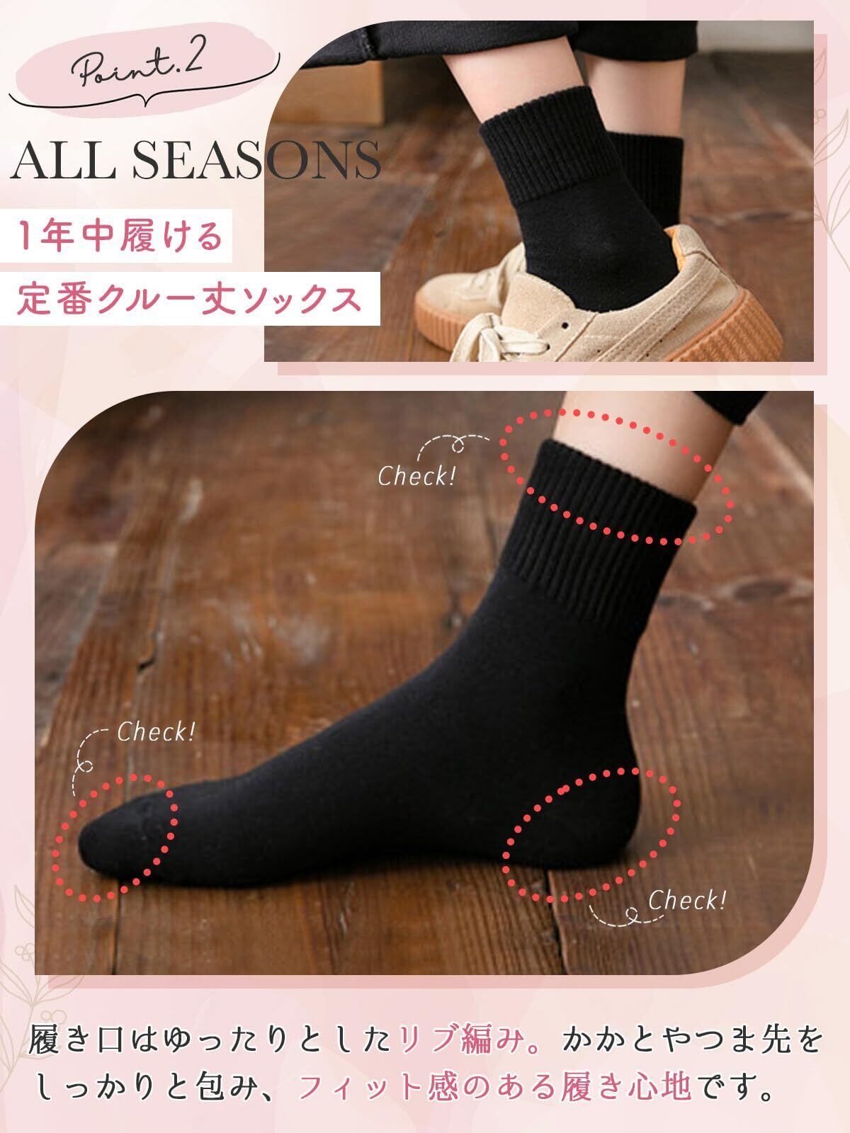 [VISELIA] 靴下 レディース 5足セット 秋冬 クルーソックス 通気性 22-25㎝ おしゃれ 可愛い かわいい 綿 コットン 部屋着 通学 通勤 室内 アウトドア ビジネス カジュアルソックス