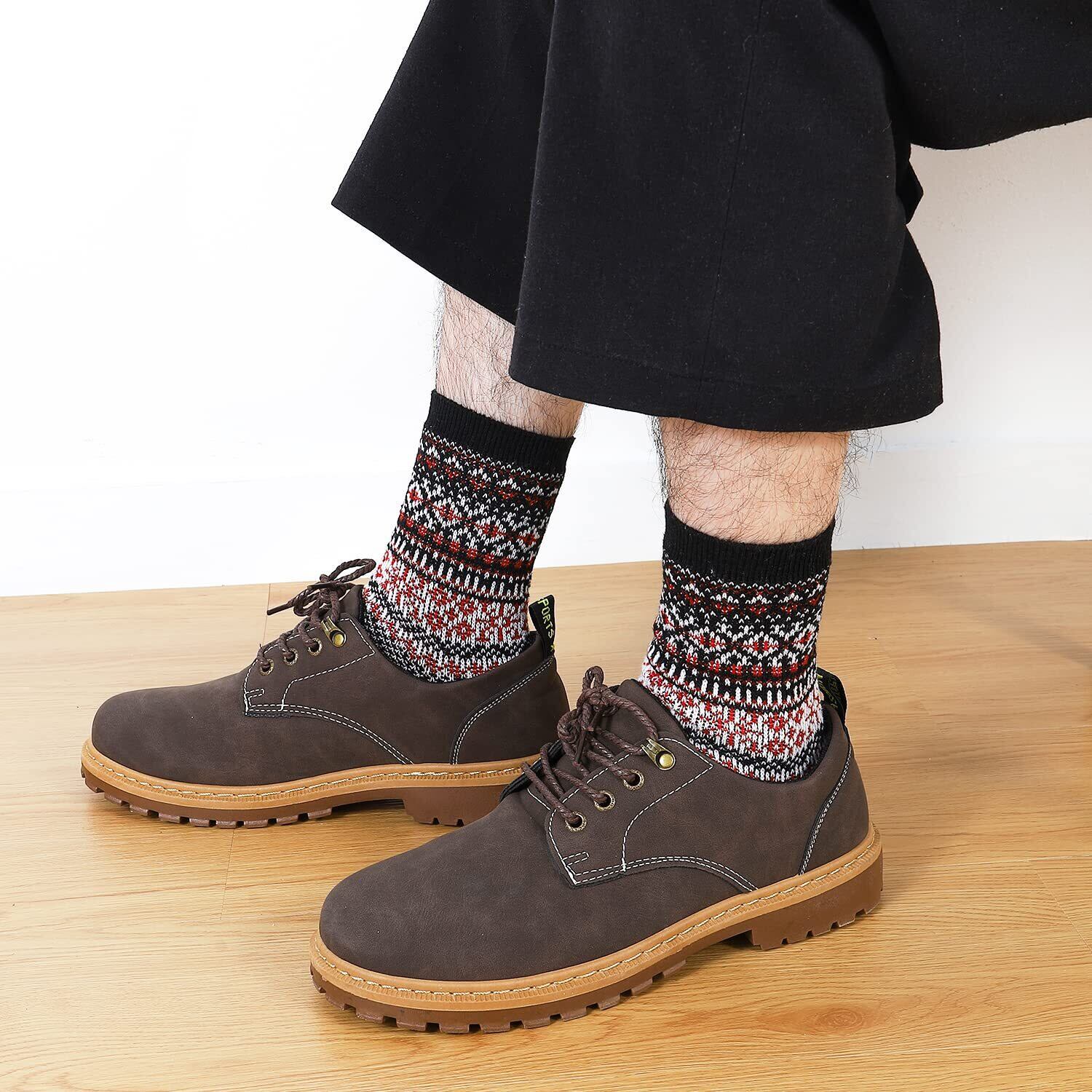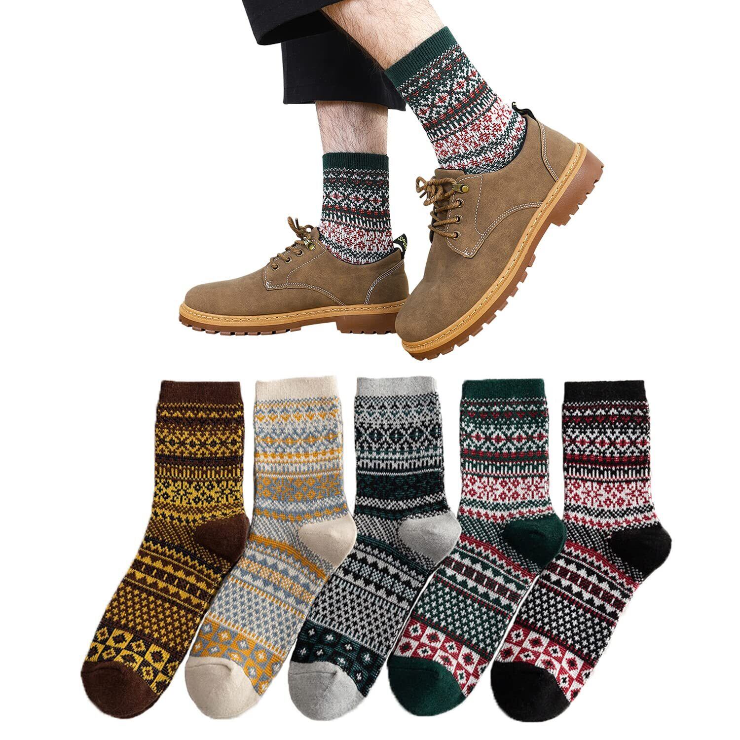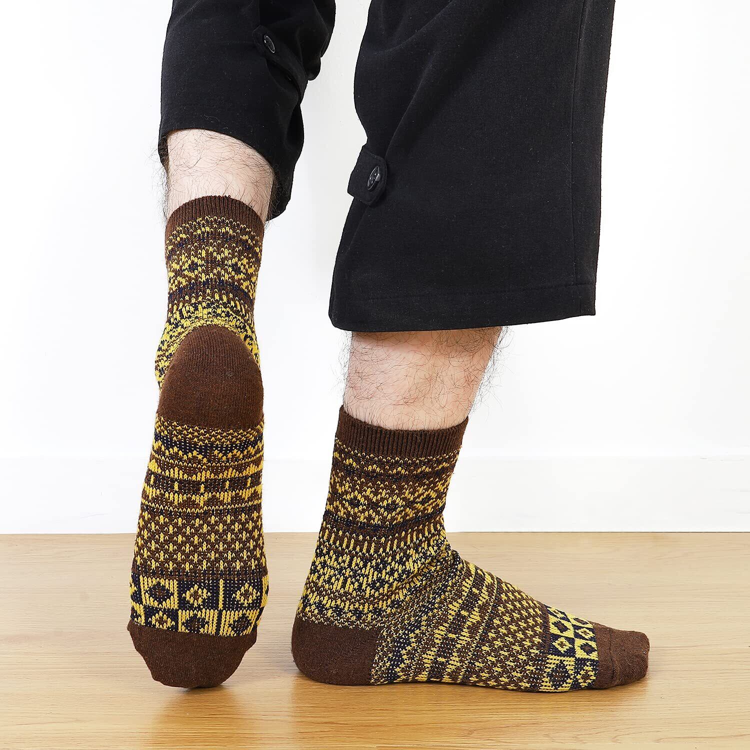 【コーディネートやすいカラフルソックス】メンズ靴下 ビジネス フリーサイズ:約23-27cm、ほとんどの男性にご利用できるメンズ クルーソックス 中厚手です。エスニック・ボヘミアン・アジアン…カラフルで遊び心のある様々なスタイルをあなたのファッションにプラスして、おしゃれを楽しめる冬くつ下 メンズ。