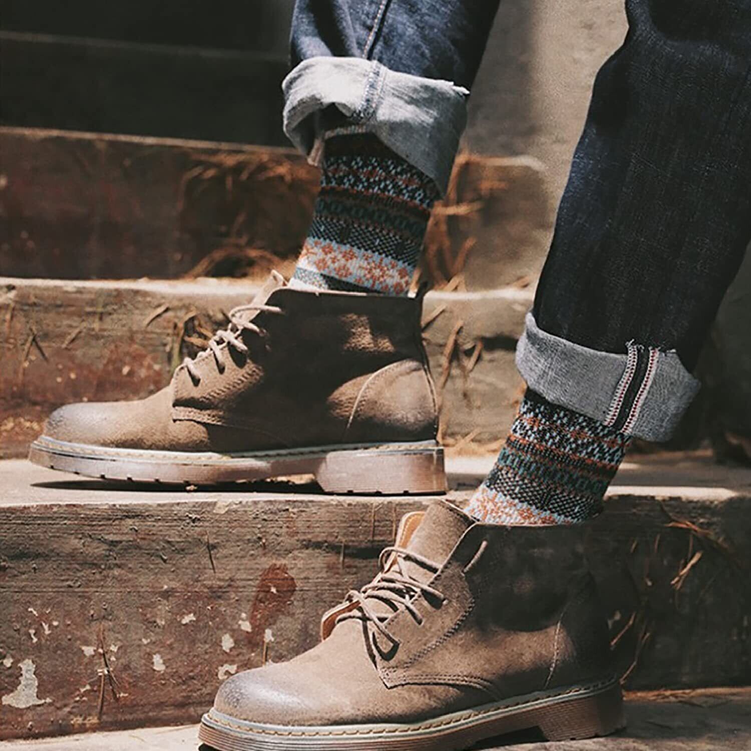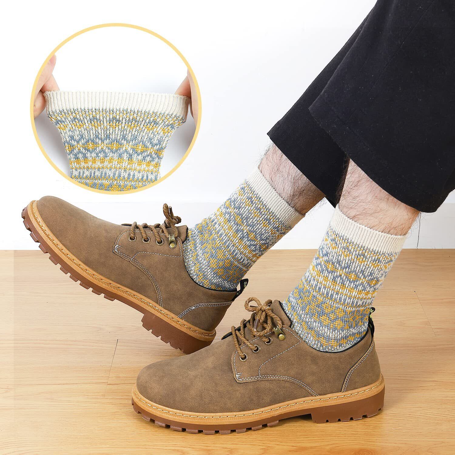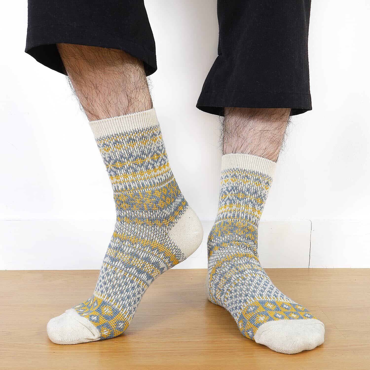 【コーディネートやすいカラフルソックス】メンズ靴下 ビジネス フリーサイズ:約23-27cm、ほとんどの男性にご利用できるメンズ クルーソックス 中厚手です。エスニック・ボヘミアン・アジアン…カラフルで遊び心のある様々なスタイルをあなたのファッションにプラスして、おしゃれを楽しめる冬くつ下 メンズ。