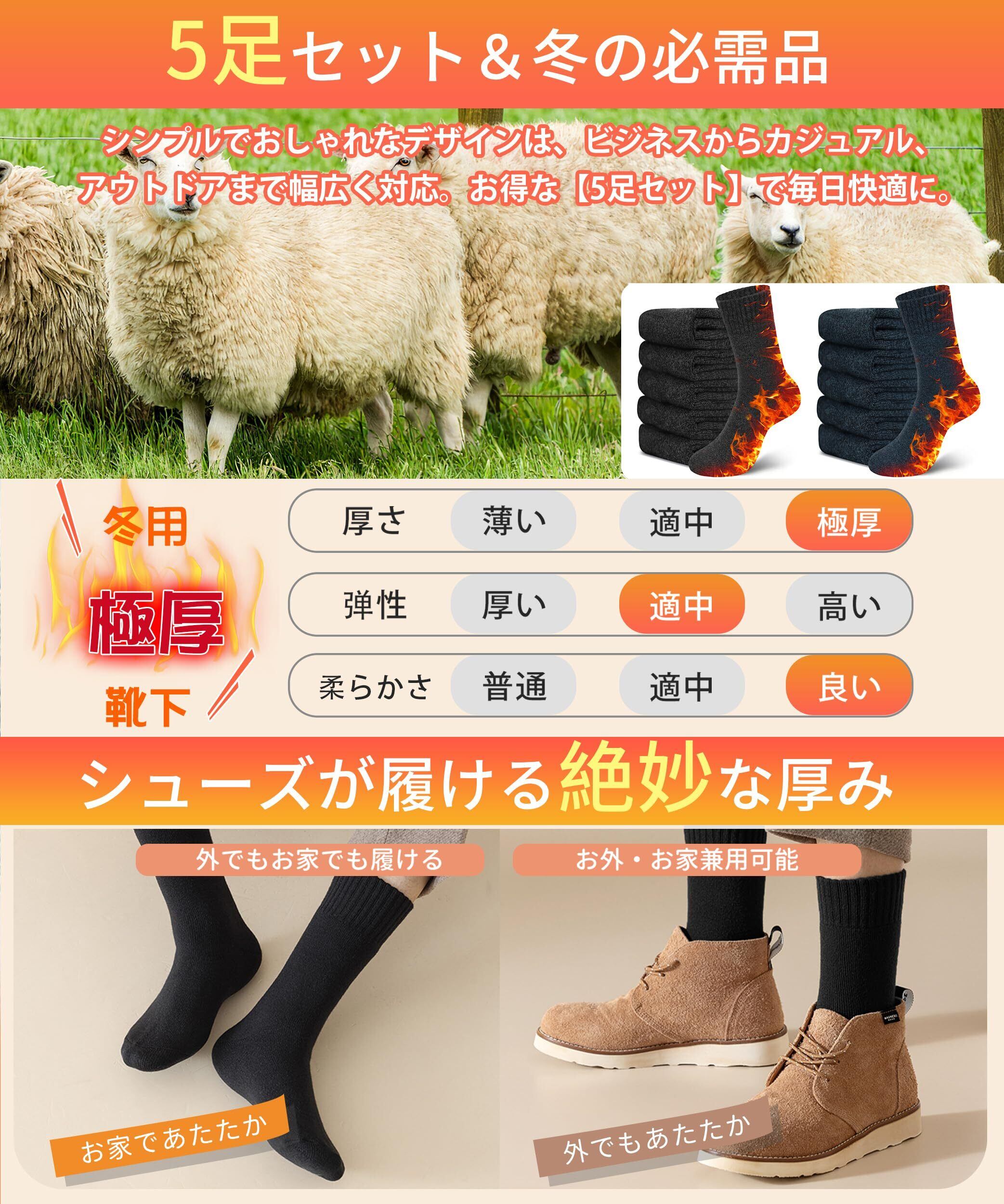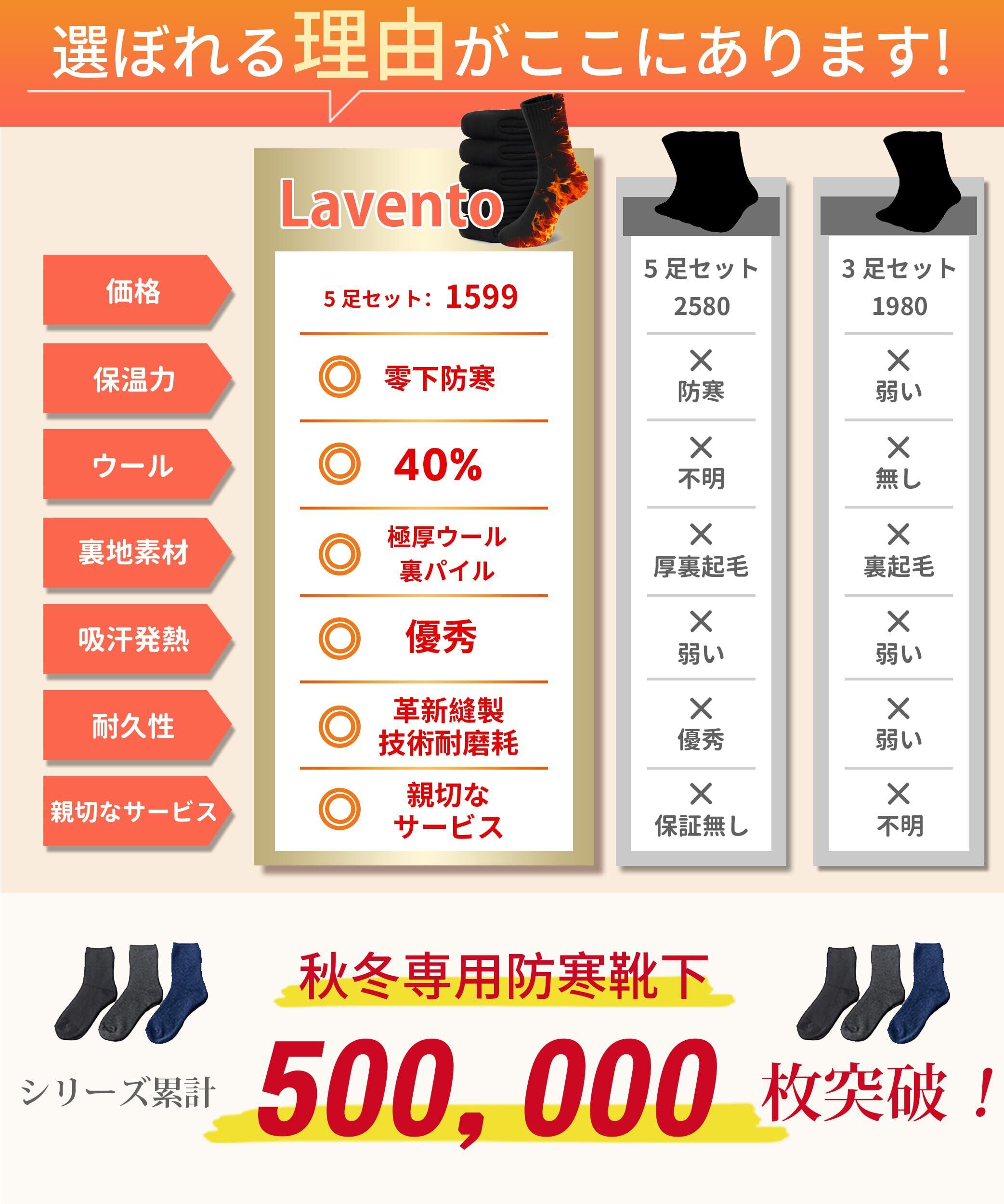 [Lavento] 靴下 メンズ ソックス 冬 【5足セット・ウール裏パイル・耐久性アップ】 防寒靴下 ウールソックス あったか 厚手 防寒 保温 消臭 360°蓄熱 伸縮性 室内 アウトドア スキー スポーツ 24-28㎝