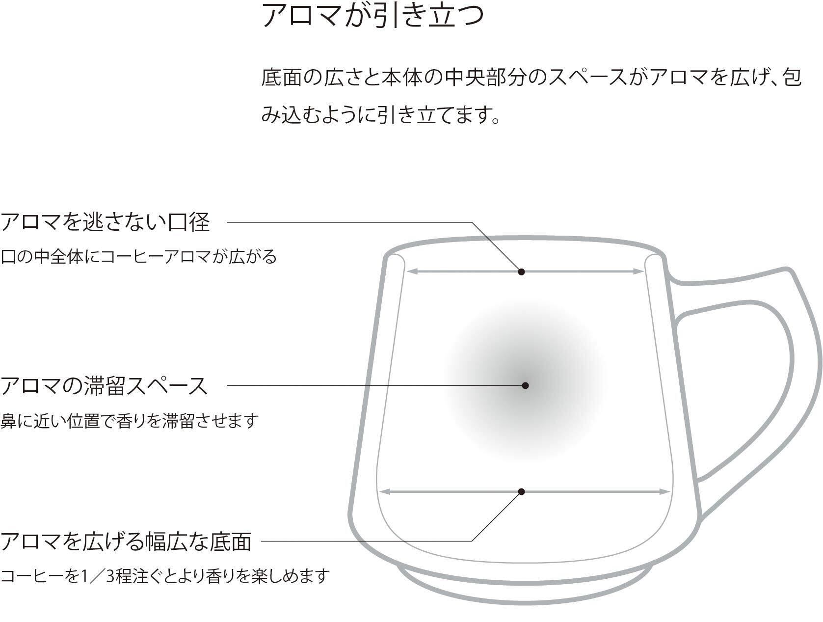 スペシャルティコーヒーの香りと風味を余すことなく楽しむために、こだわりぬいてつくりあげたマグカップ。