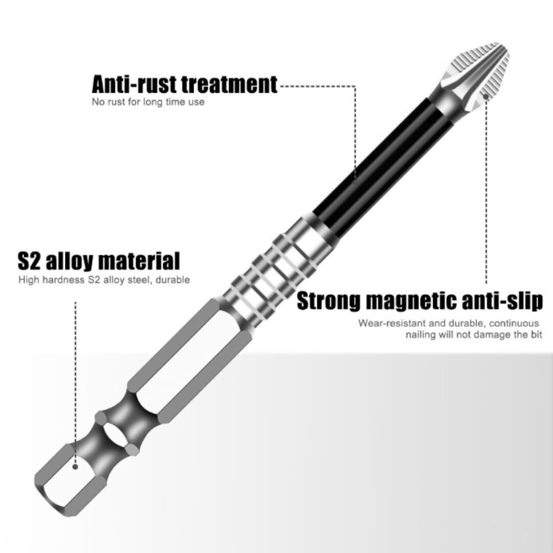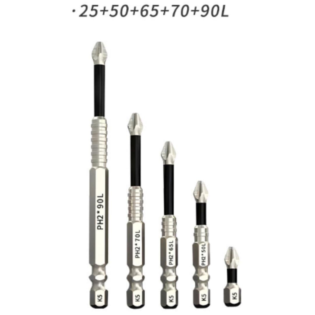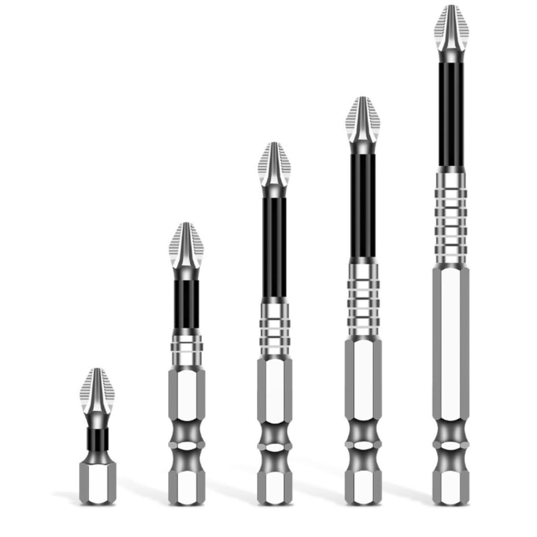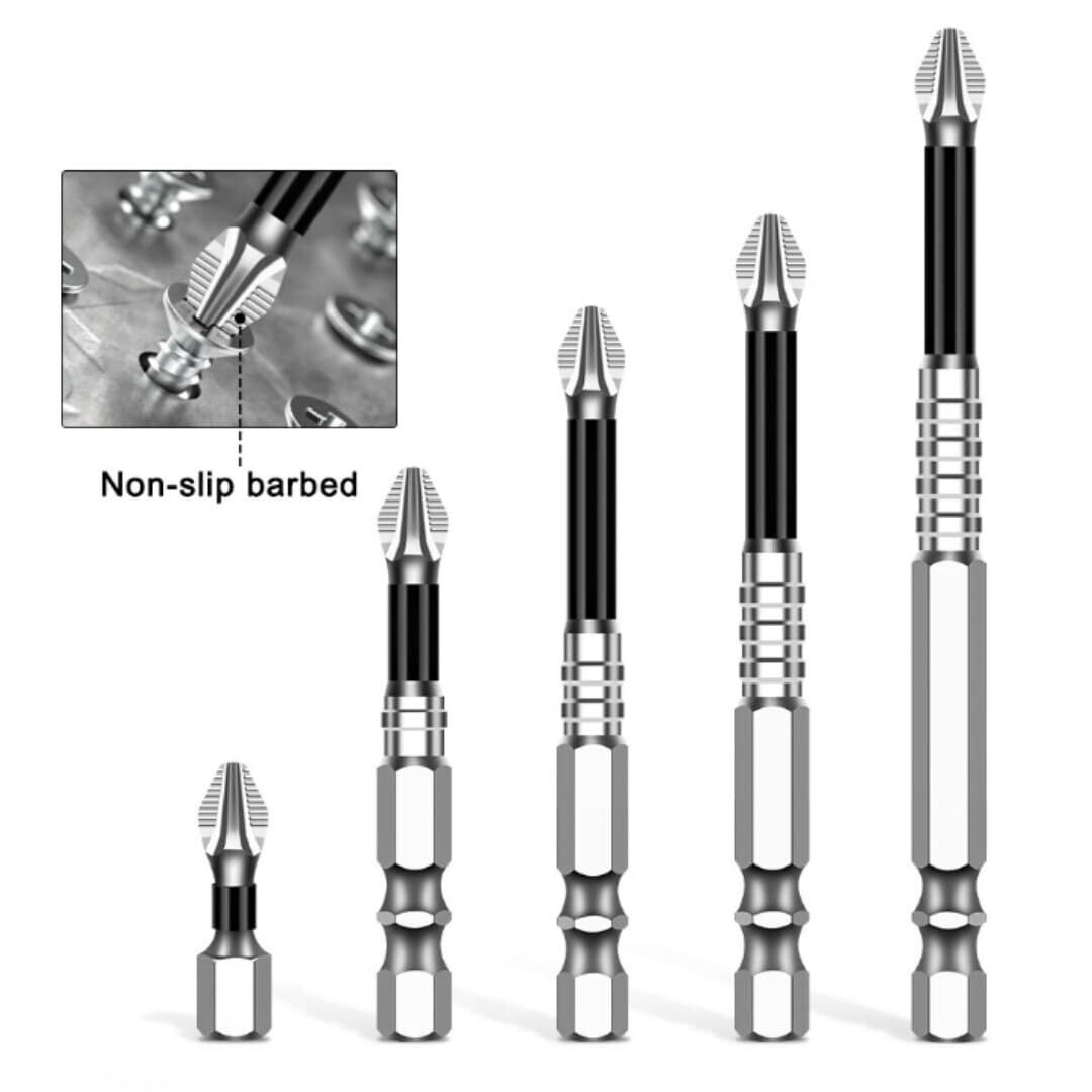 滑り止め十字ドライバービット 5本セット 合金鋼 磁気インパクトドライバービットセット 家庭用 & 業務用