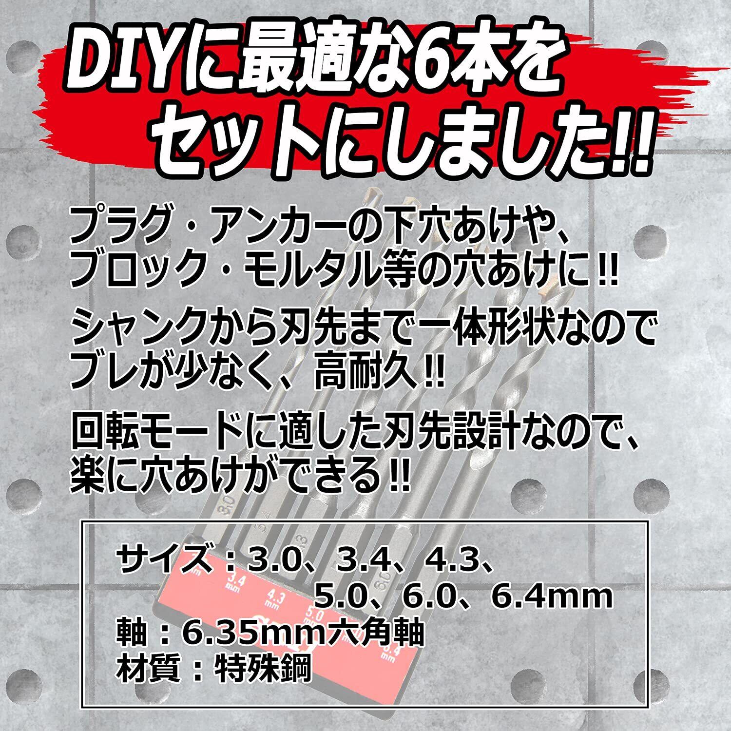 特徴:プラグ・アンカーの下穴あけ、DIYに最適な6本セット