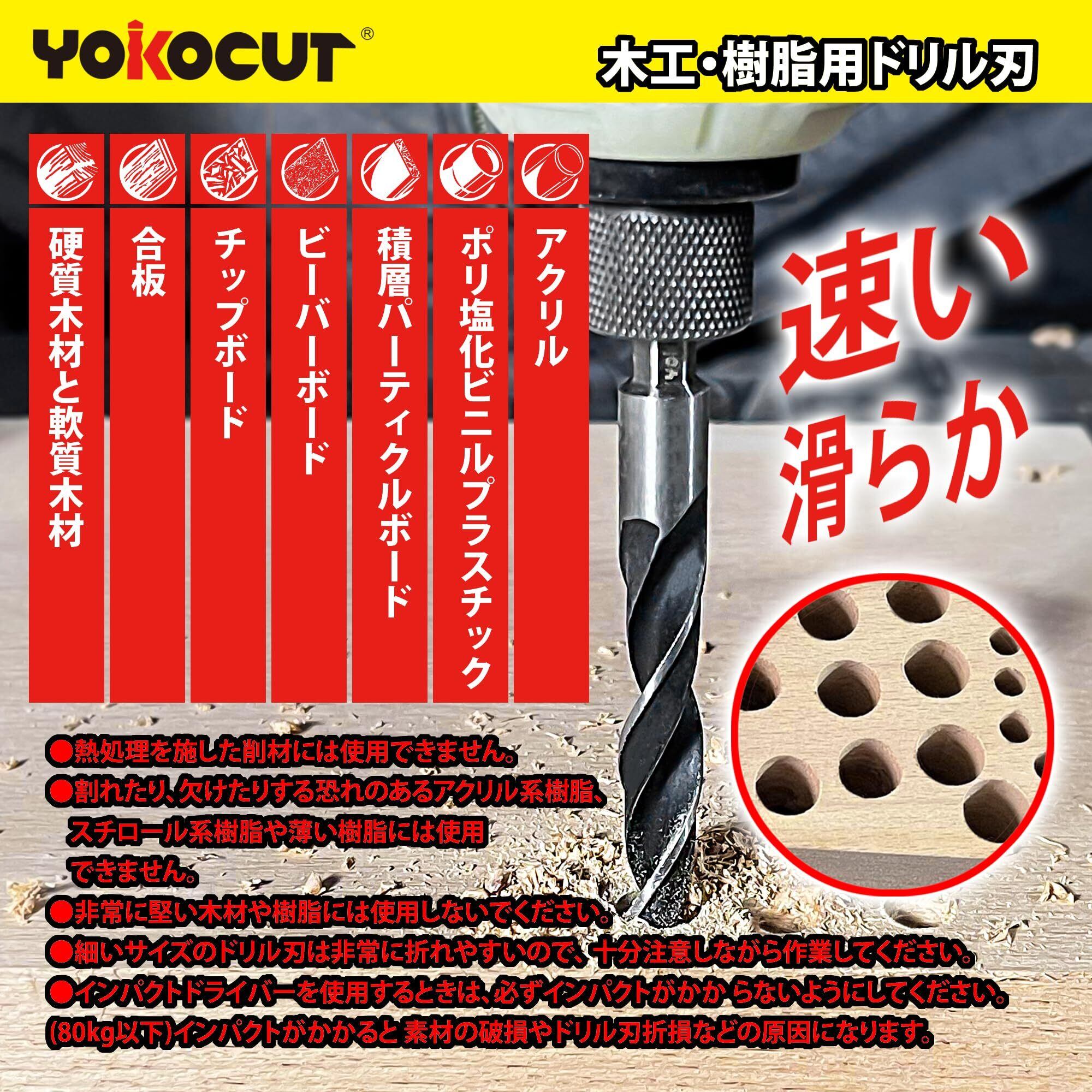 YOKOCUT ドリルビットセット 木工用ドリル 六角軸 10本組 で インパクト両頭ドライバービット, 高炭素鋼の素材を使用し、熱処理を施しています。製品の加工性能が良く、強度と靭性が高いです。刃を研磨した後も切れ味が鋭く、品質が安定しています。