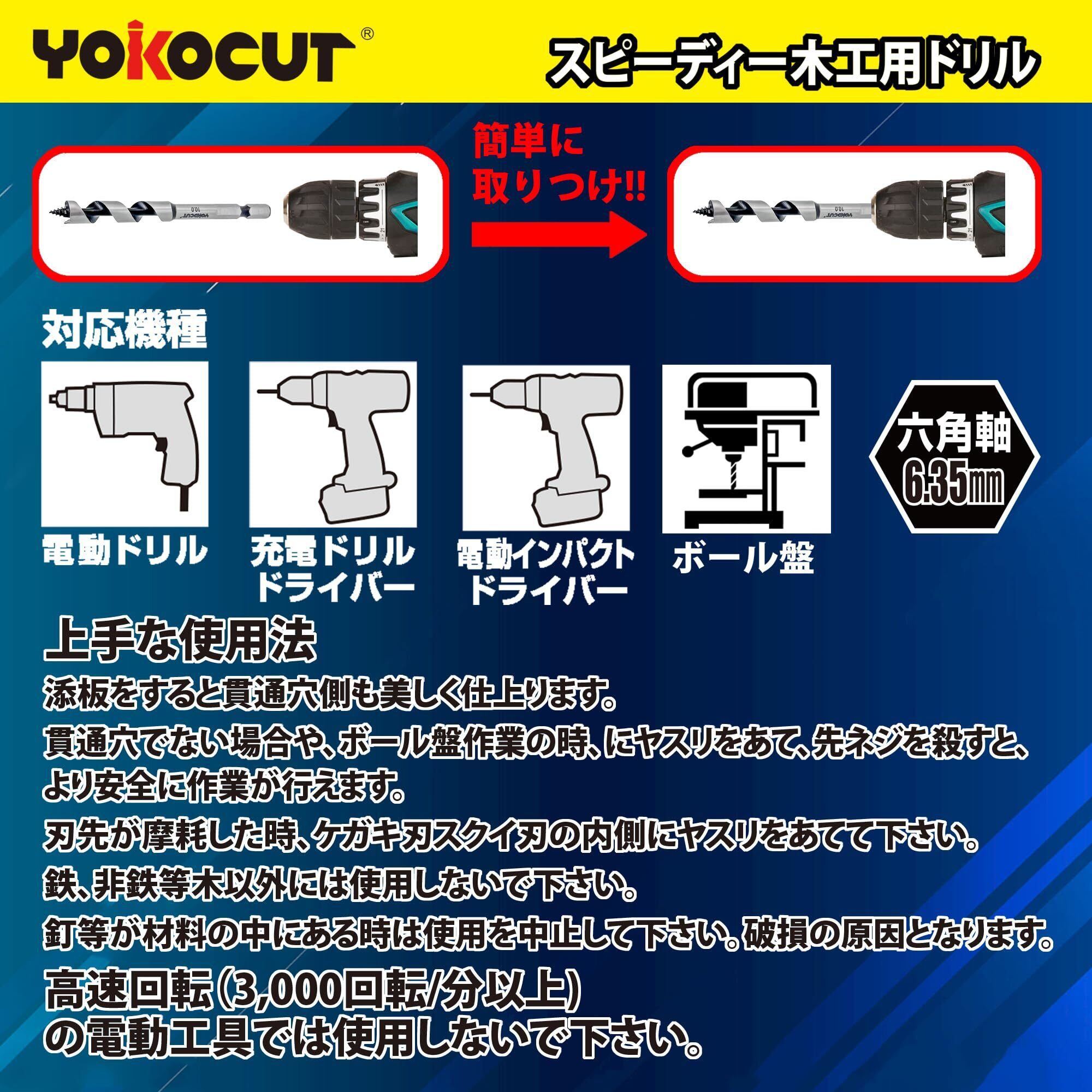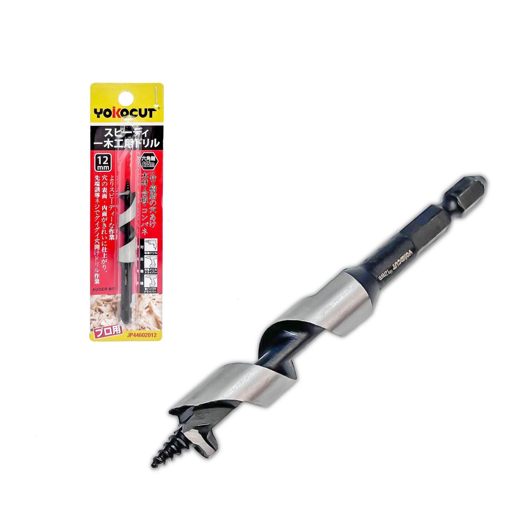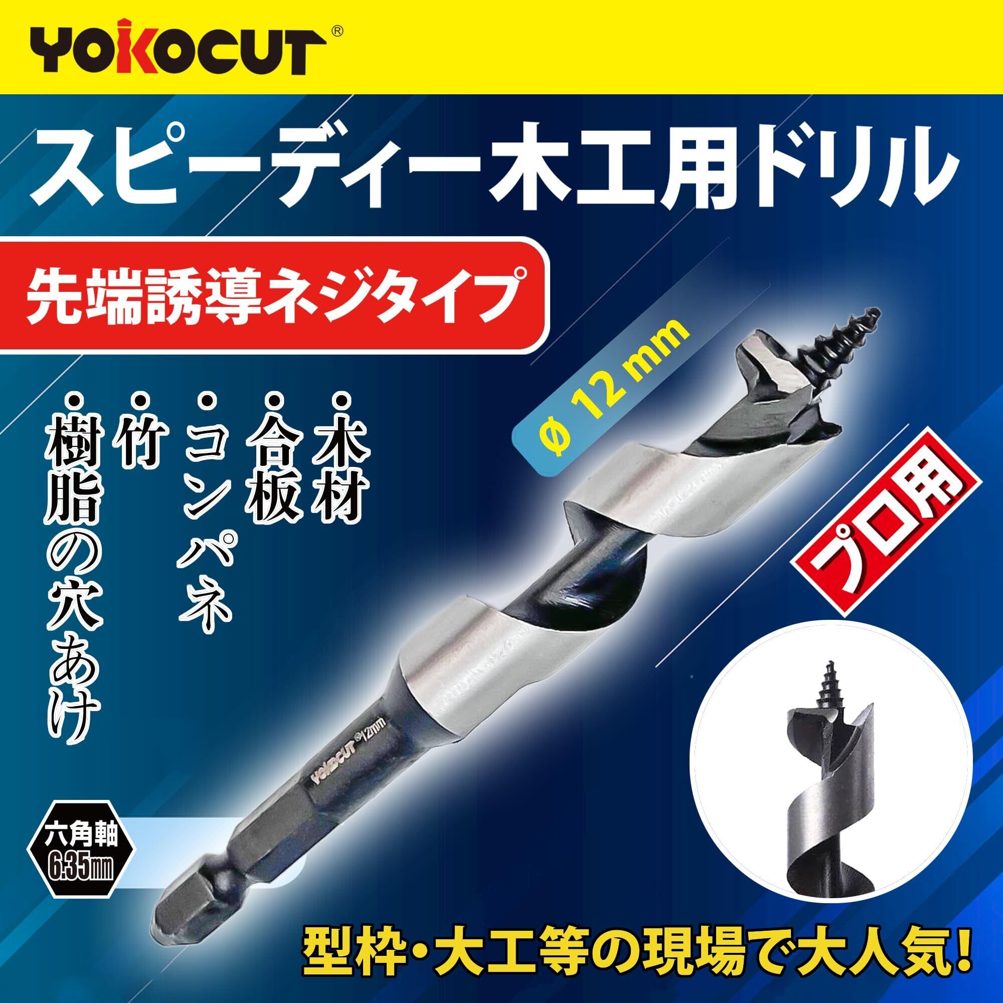 YOKOCUT 木工用ドリルビット 12mm 六角軸 木工用ショートビット、充電式インパクトドライバー、ドリルドライバー、電気ドリで使用可能。先端誘導ドリルポイントが穴ずれを防ぎ、美しい真円に仕上がる木工ドリル。
