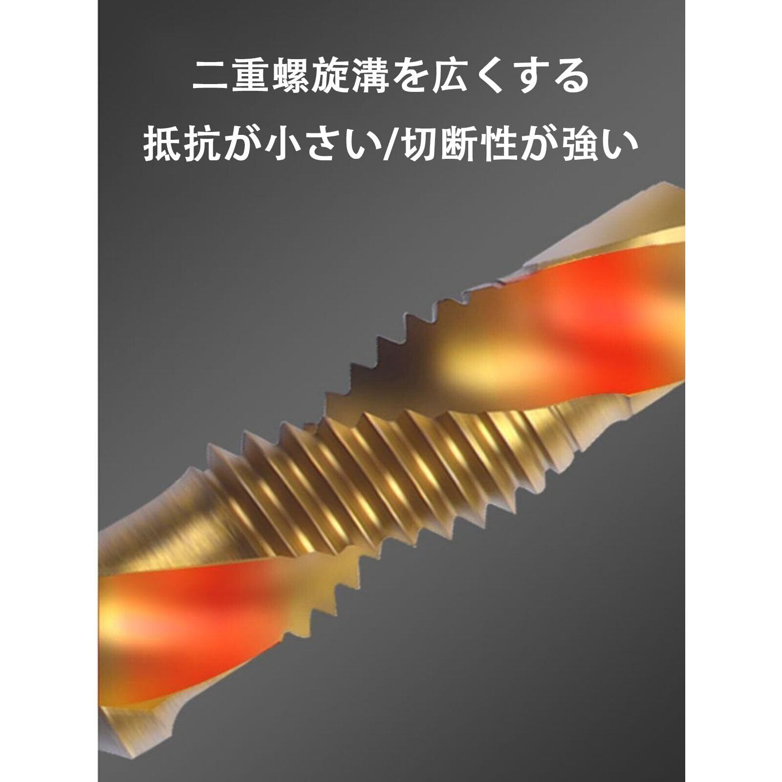【効率アップ】一本で穴あけ、タッピングおよびバリ取り、カウンターシンクの役を兼ね備えた優秀なツール。手間と時間を大幅に削減することができます。スパイラル機構なので切粉を上方向に排出。正逆転付機種に取り付けてタップの下穴あけ作業とネジ切り作業が同時に行えます、仕事の効率をよく高めました。
