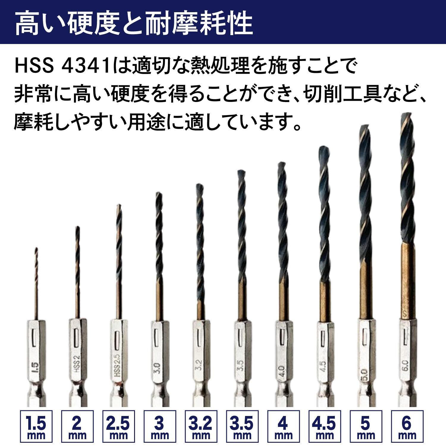 【これ一つで様々なサイズの穴あけに対応】 1.5mm、2.0mm、2.5mm、3.0mm、3.2mm、3.5mm、4.0mm、4.5mm、5.0mm、6.0mm の充実の10本セット。様々なサイズの穴あけに対応できるので、DIYの幅がぐっと広がります。