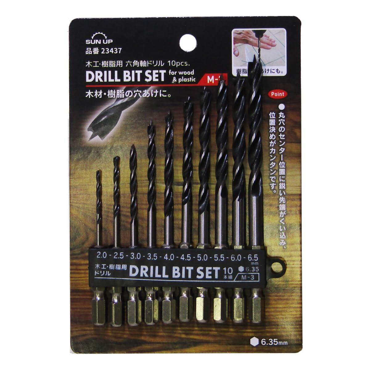 近与(KONYO) SUN UP 木工・樹脂用 六角軸ドリル 10PC M-3