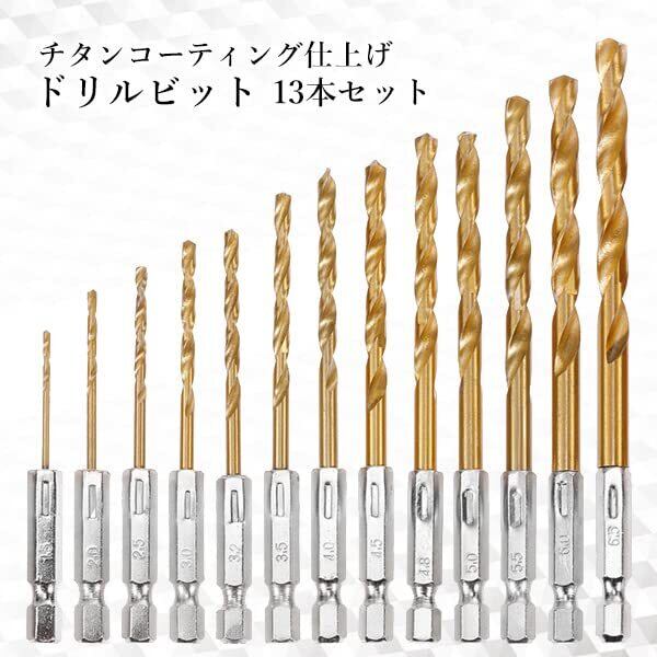 ドリルビット 穴あけ 13本セット DIY 六角軸 インパクトドライバー ドリルドライバー 電動ドリル 鉄工用 木工用 鉄鋼用 万能
