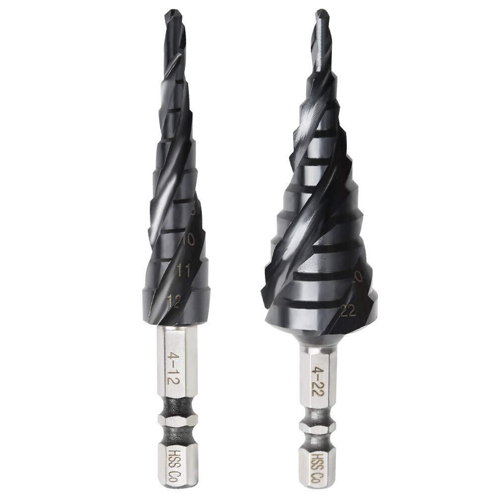 三枚刃ステップドリル ステンレス用 2個セット XMSSAA 六角軸ドリルビット 窒化チタンアルミコーティング コバルトハイス鋼 穴あけ用スパイラルドリル たけのこドリル 円錐ドリル HSS-Co M35