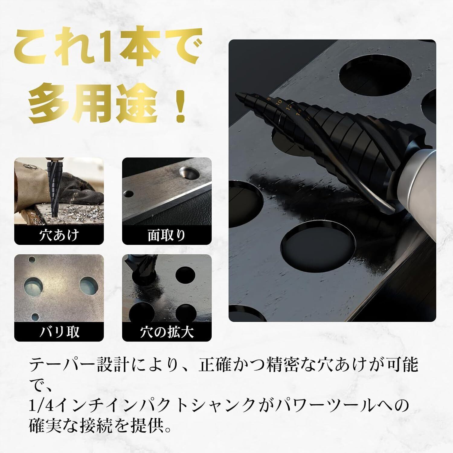 多用途:ステップダウンビットまたはユニビットとして機能し、さまざまな穴あけニーズに効率的で便利。たけのこドリルとしても使用可能です。