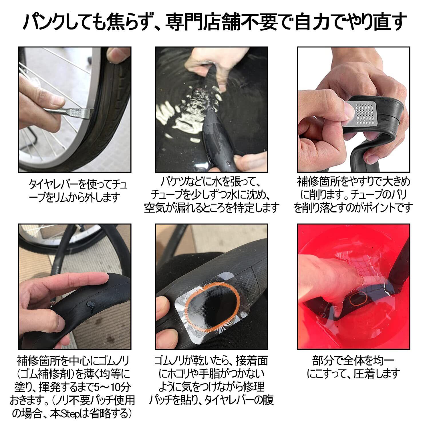 【使い方】日本語取説付属しておりませんが、写真3枚目をご参照頂くか、検索エンジンで自転車パンク修理をご参照頂ければ、簡単に自力でパンク修理できます。