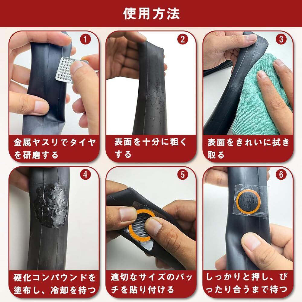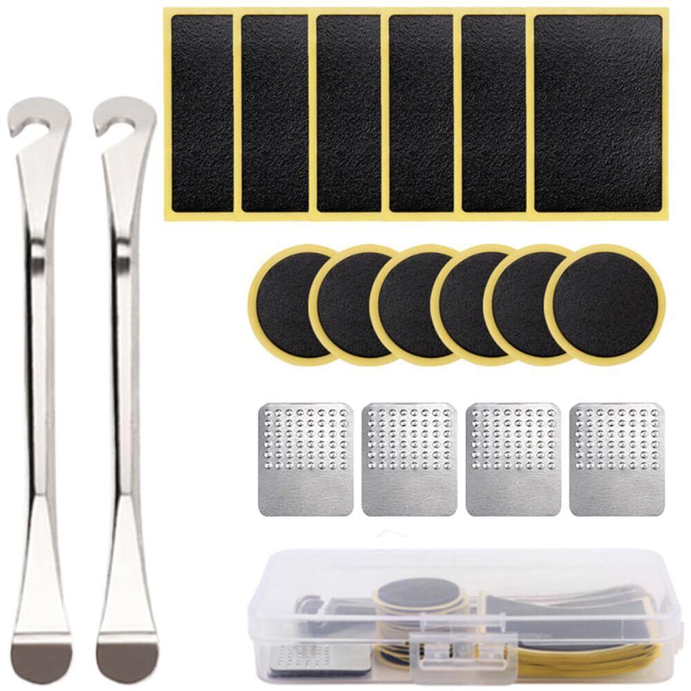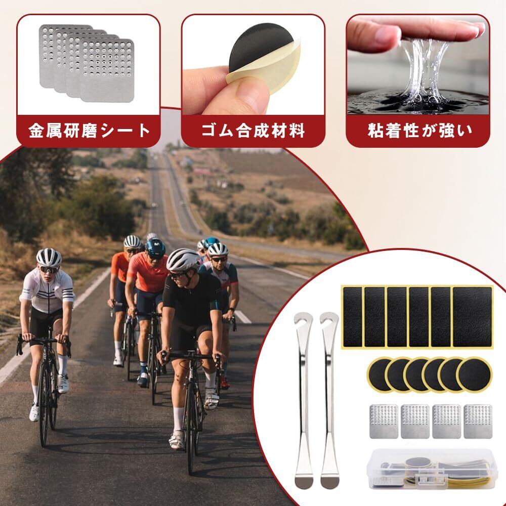 自転車 タイヤ 修理キット緊急用タイヤ修理自転車 パンク修理キット 粘着剤不要 便利 イージーパッチキット 汎用 ステンレス鋼 収納ボックス付き 18個セット