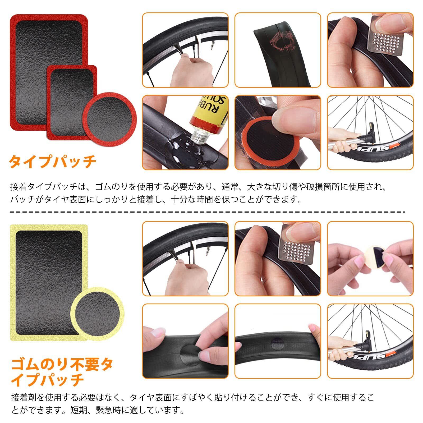 自転車パッチセット パンク修理 Oziral 自転車 タイヤ修理キット タイヤパッチ ゴムのり タイヤレバー やすり 応急用タイヤ修理 補修 軽量 コンパクト 汎用 便利 日本語取扱説明書