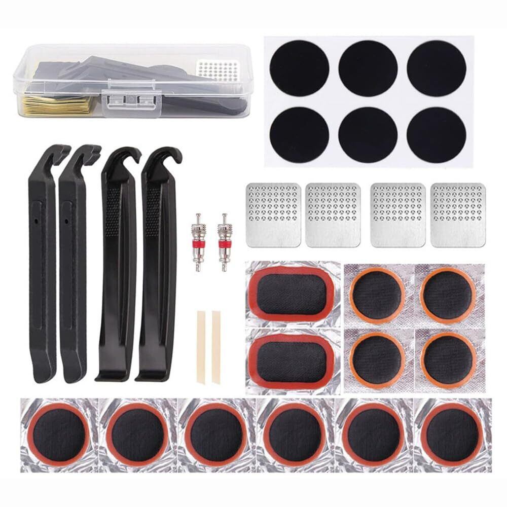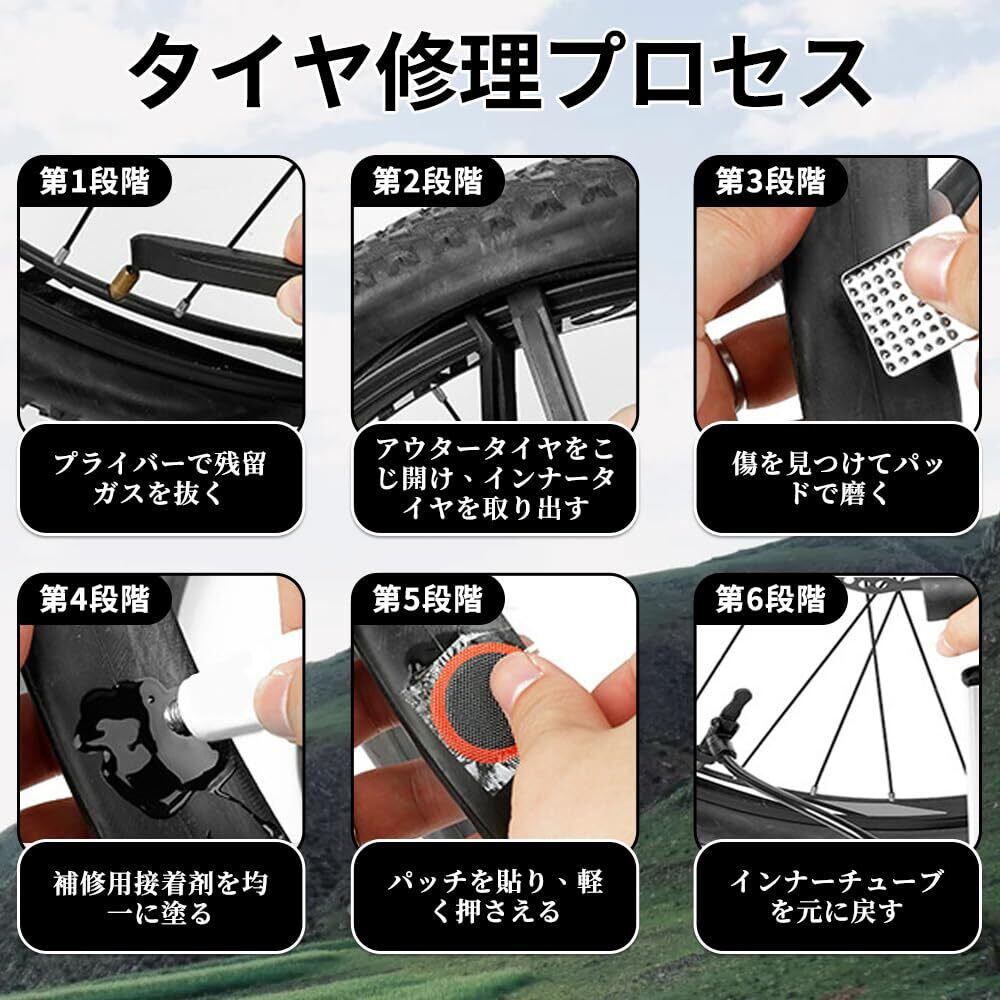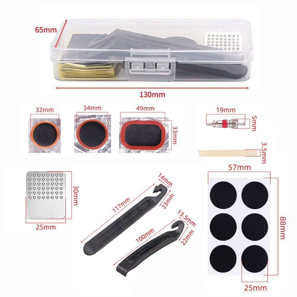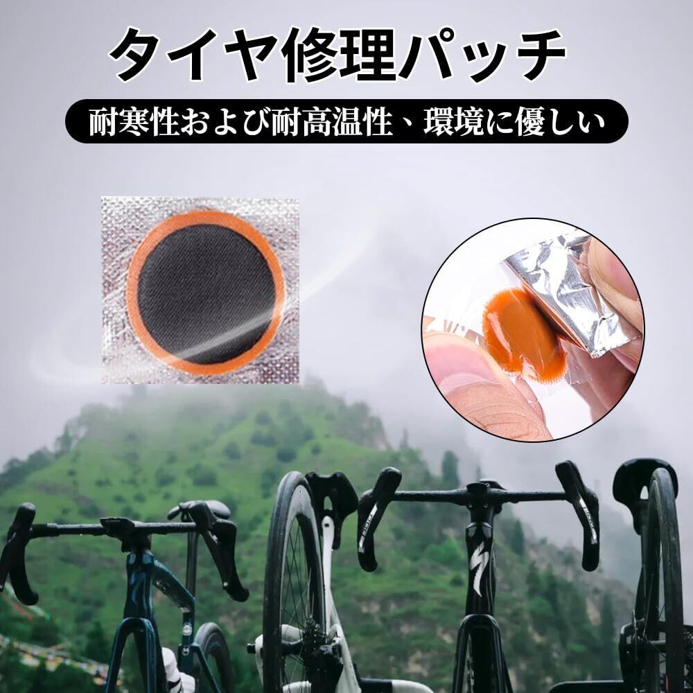 自転車タイヤパッチ 自転車 タイヤ 修理キット 自転車 修理 応急用 パンク修理キット 自転車タイヤパッチ 応急用 タイヤ修理 補修 修理ツール 汎用性 軽量 コンパクト 収納ボックス付き