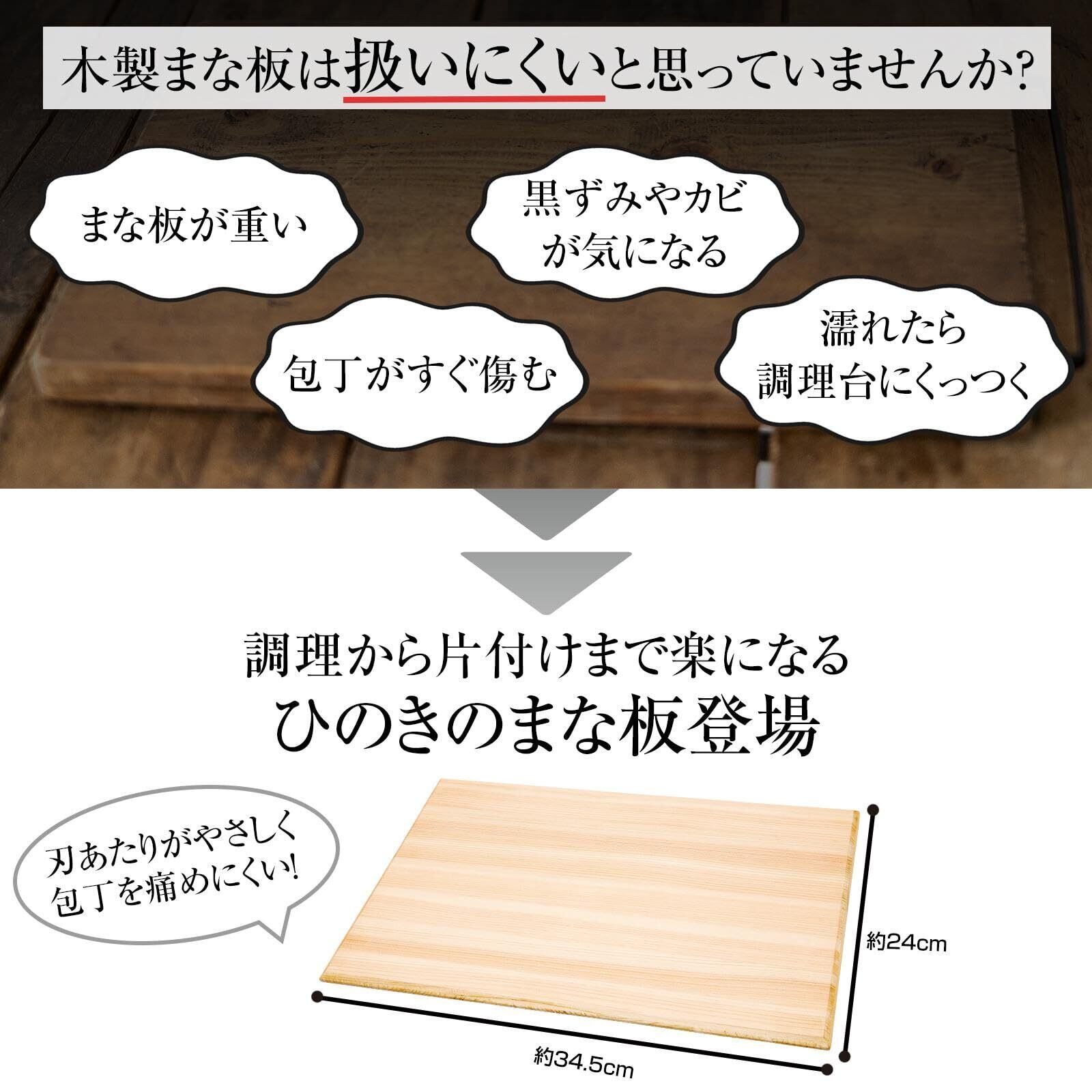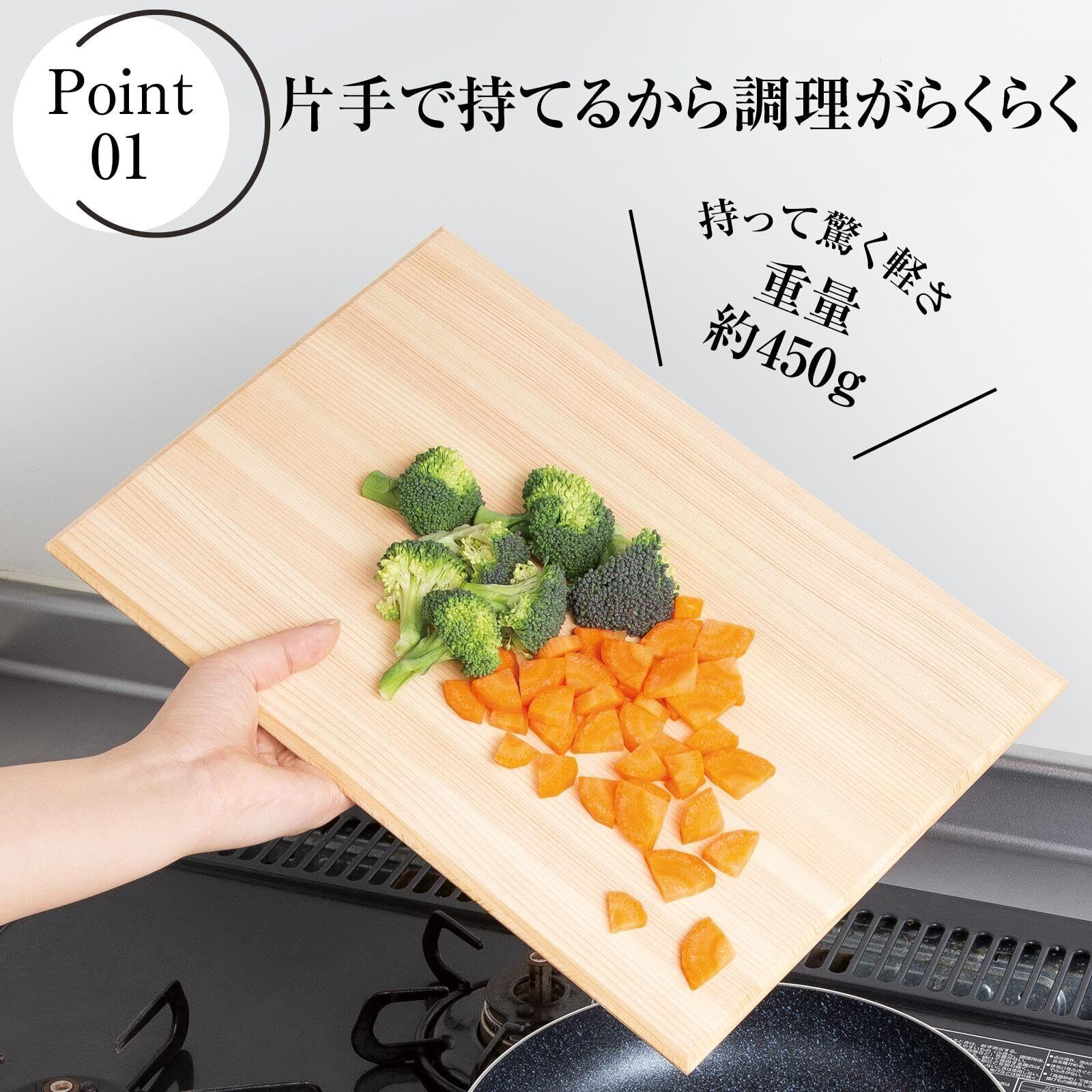 コモライフ 軽くてらくらく ひのきまな板 (34.5×24×1cm) 東濃ひのき 軽量 撥水加工 檜 木製 斜めカット 日本製