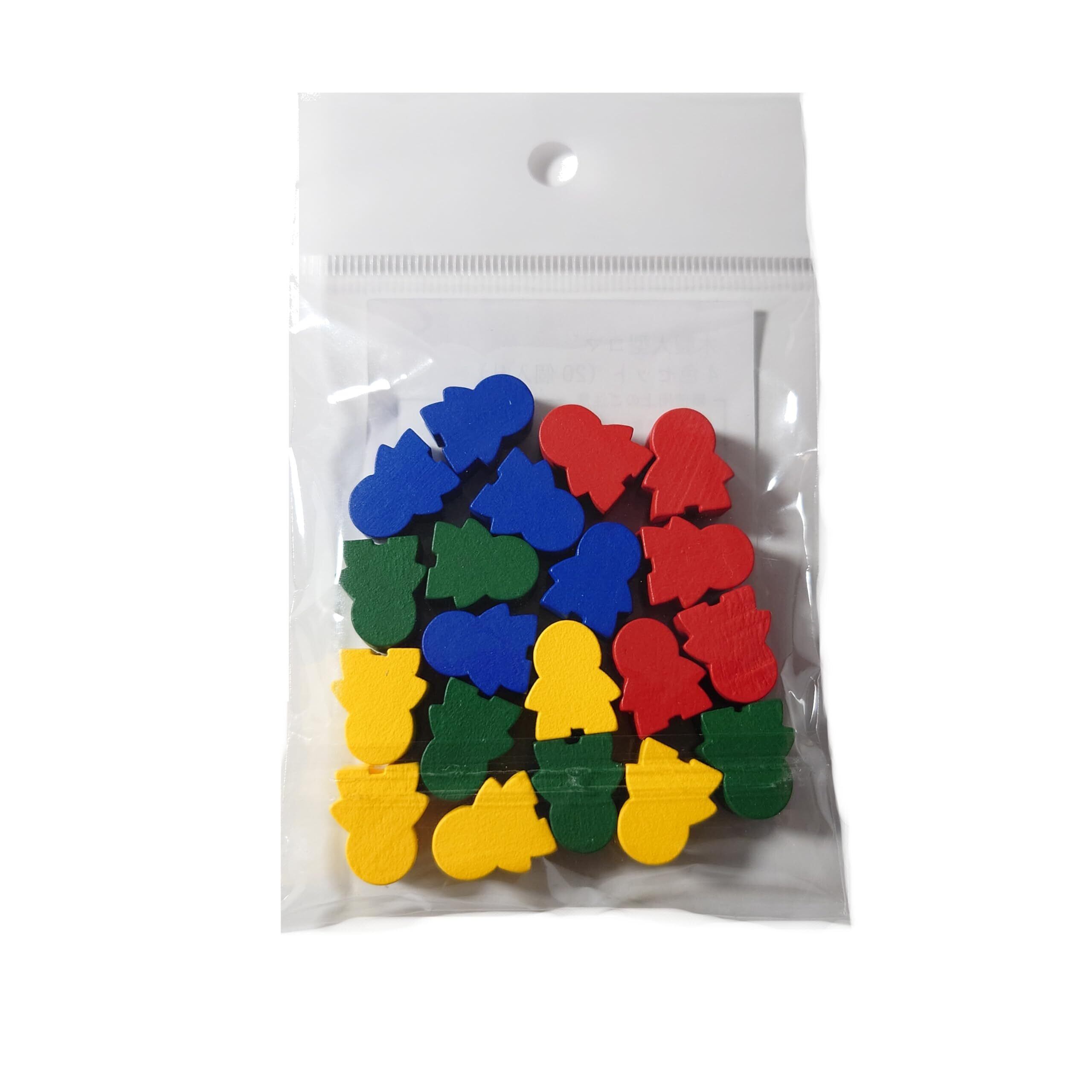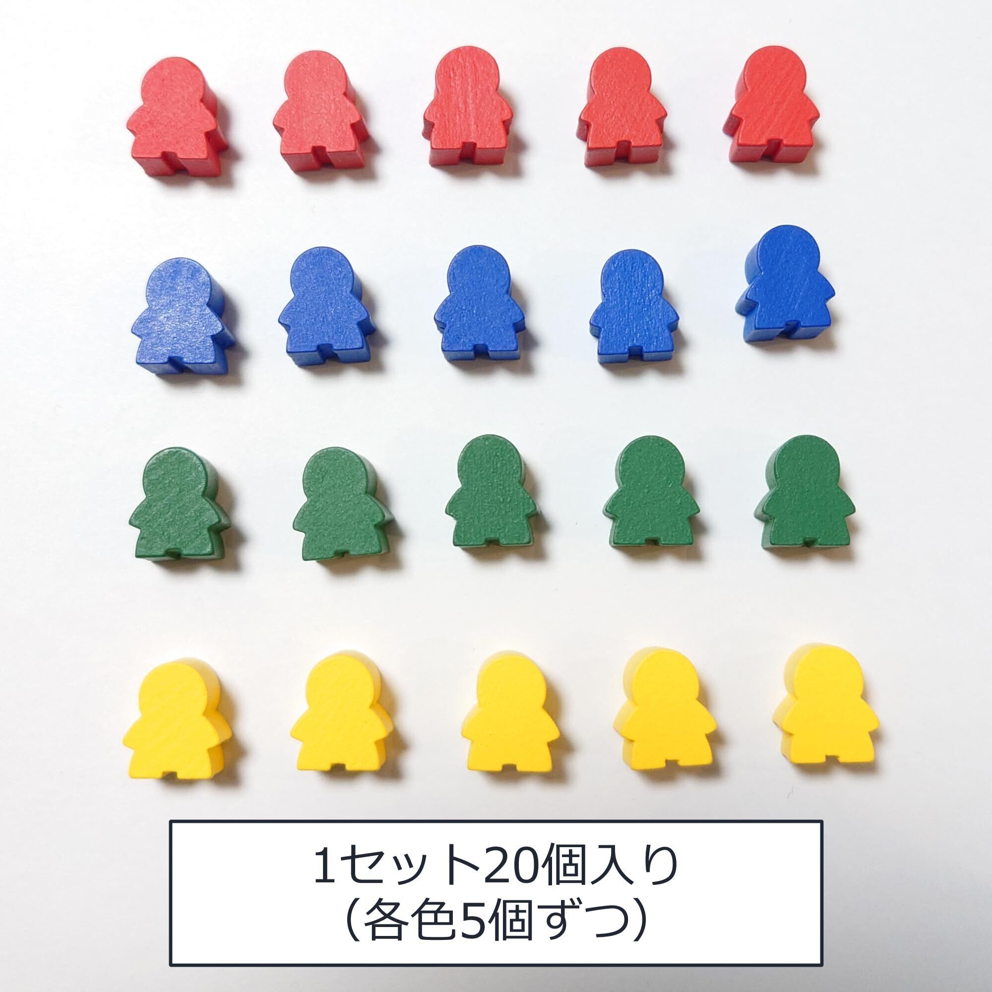 木製人型コマセット 20個入り 14x16x10mm (赤・青・緑・黄)|ボードゲーム・クラフト・教育素材
