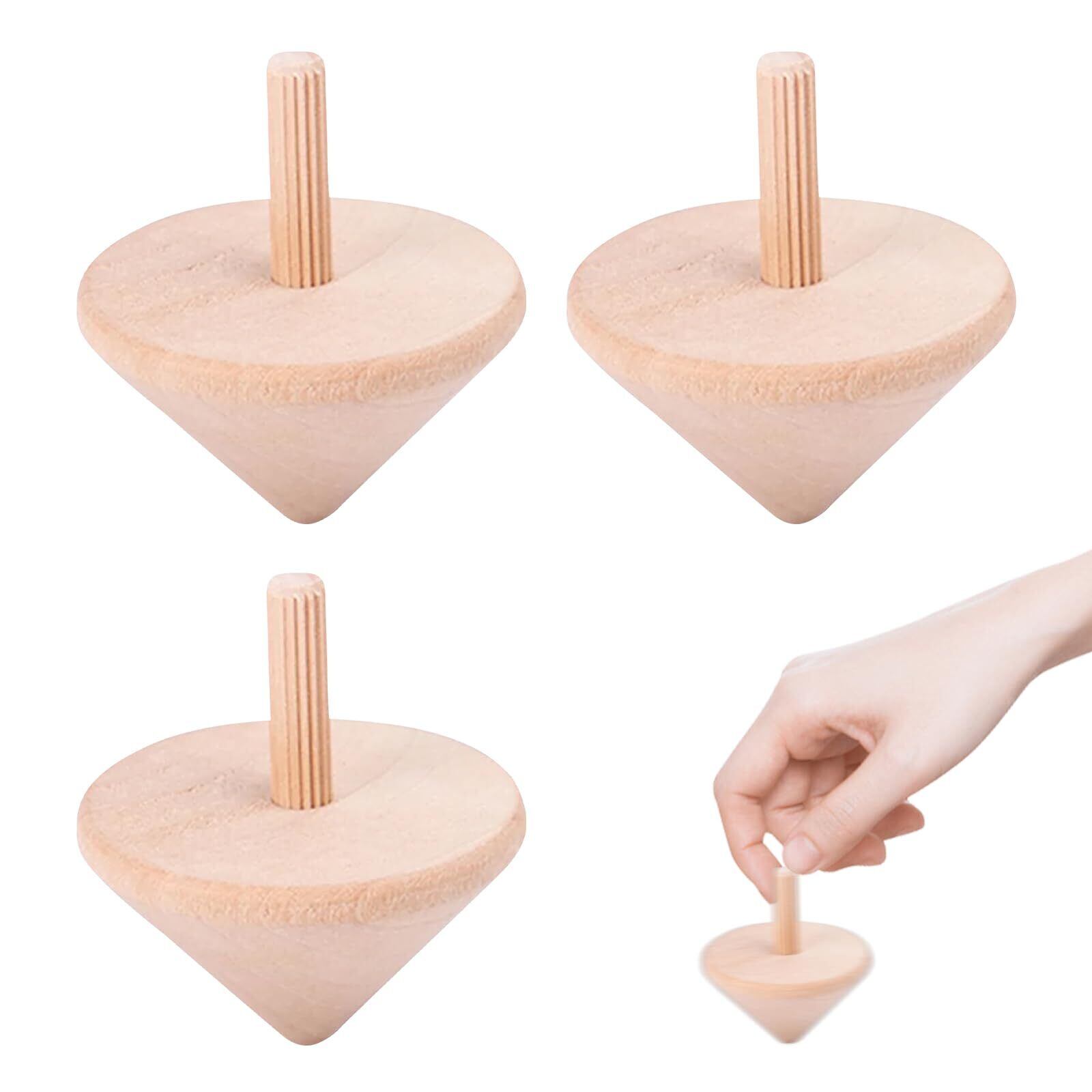 【木製 手回しこま】木製 手回しこまは無着色、こまにペイントして独自のスタイルを作成できます。一緒に自由に創造的に絵を描いたり、色を塗ったりできます。