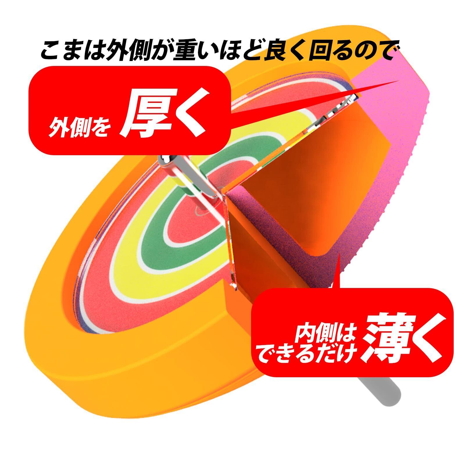 POM樹脂製で強度があり壊れにくい独楽になっていますが、傷がつき、ささくれ立っている場合はやすりなどで削って平らにしてご利用ください。