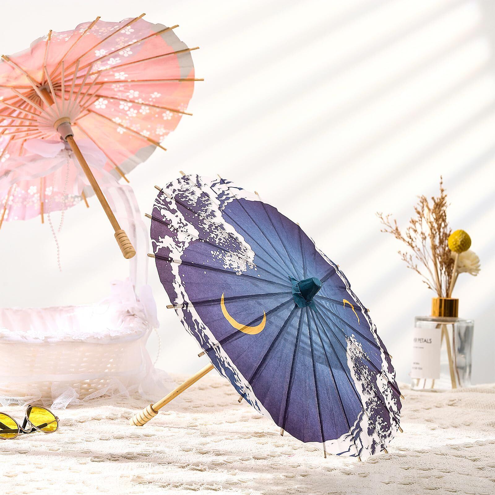 ミニ紙傘は、装飾だけでなく、さまざまな用途に使えます。例えば、演劇やダンスのパフォーマンス、コスプレの小道具としても活用できます。多彩なシーンで使えるため、非常に便利なアイテムです。