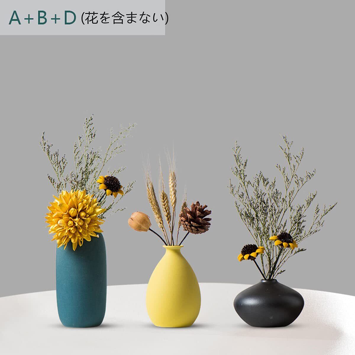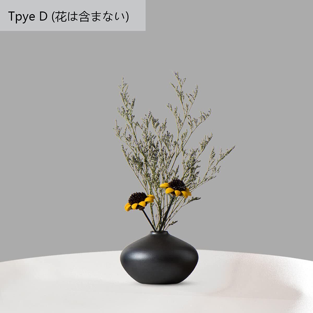 花瓶 陶器 一輪挿し ミニ おしゃれ フラワーベース 3点セット小さめ 和風花瓶 日本 ブラックセラミック 黑 植木鉢インテリア飾り プレゼント (セット-(ABD-3点入り))
