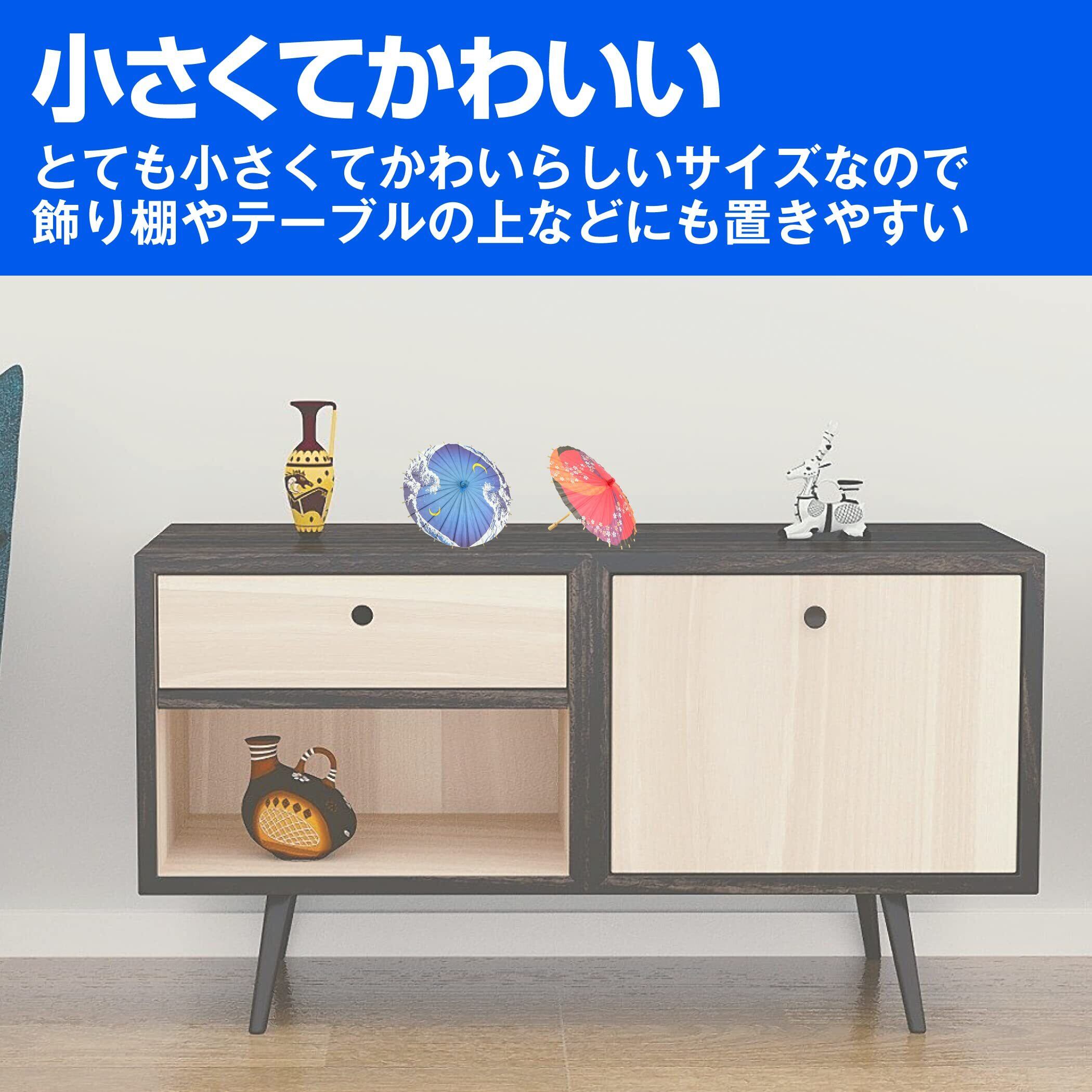 趣のある和風のミニ紙傘:趣のある美しさが印象的な和風デザインの紙傘セットとなっています。凛とした存在感がありながらも目立ちすぎないので、他の小物と合わせて飾ったりしやすいです。