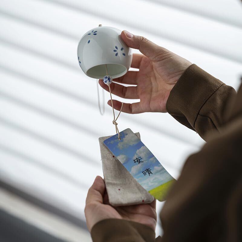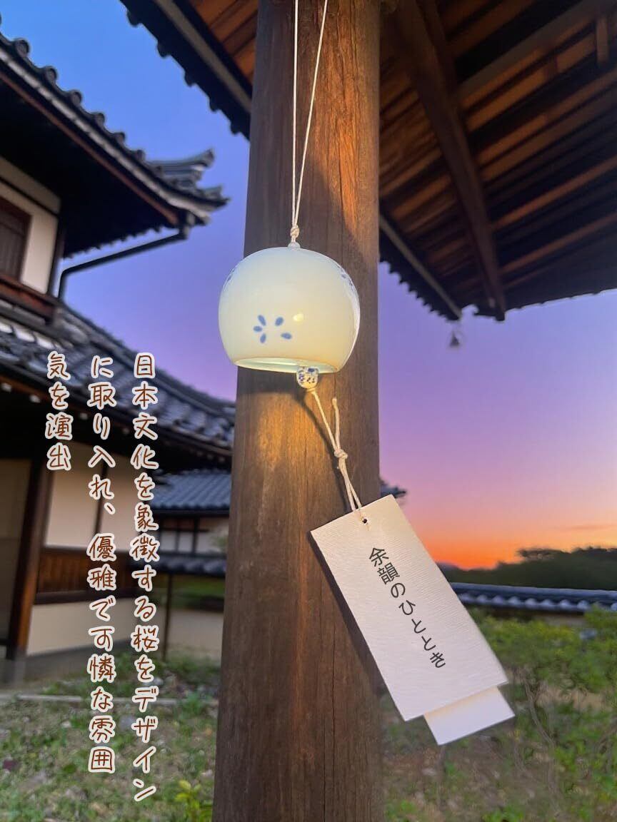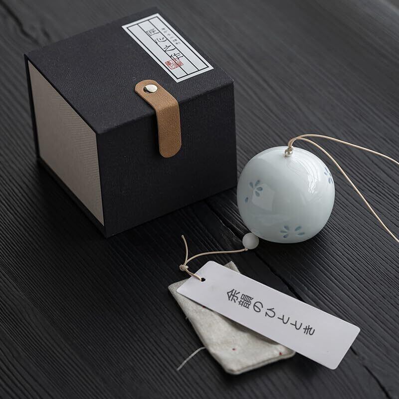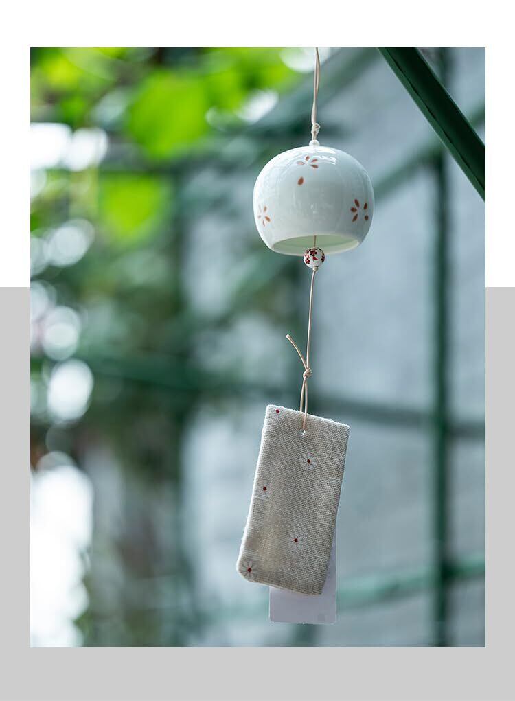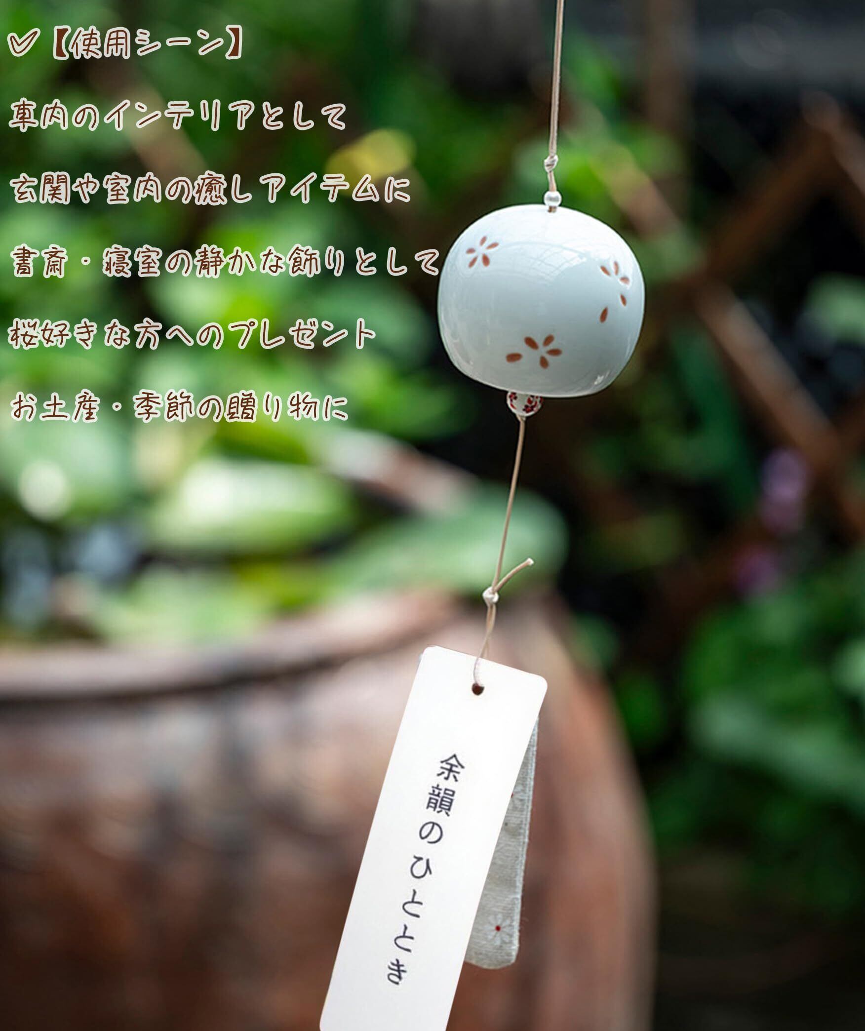 陶器風鈴 桜モチーフ 和風飾り ミニ 風鈴 夏の風物詩 ウィンドチャイム 車内吊り飾り ギフトボックス入り 祈願用 余韻のひととき 高温焼成 そして澄んだ音色 玄関 チャイム 屋内 屋外 ふうりん 手作り工芸品 (b)