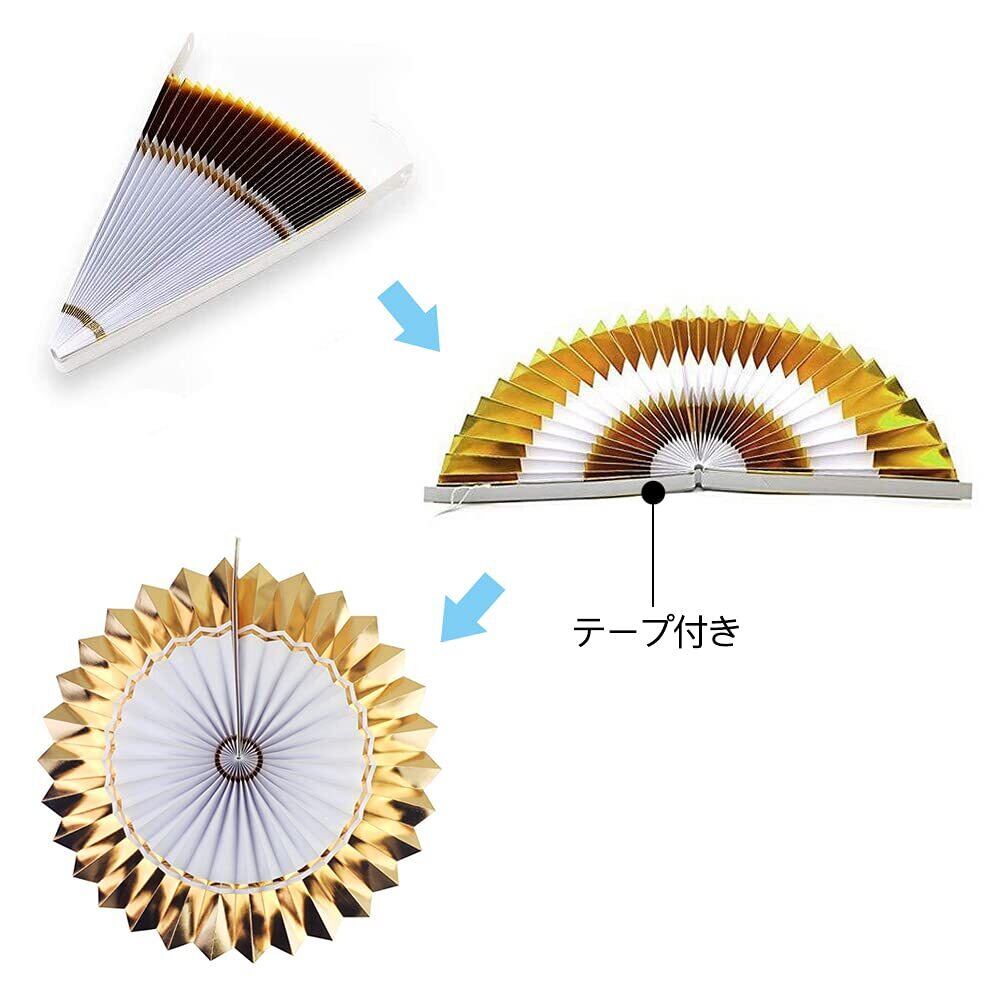 【使用に簡単】ペーパーファンには両面テープがつきますので、組み立てが簡単です。厚手の金箔紙で作られて、再利用可能です。