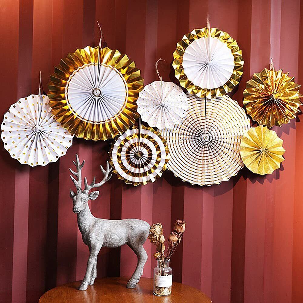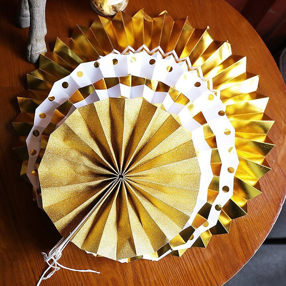 YFFSFDC ペーパーファン 8点セット ゴールド 誕生日 飾り付け セット パーティー デコレーション バースデー/ひな祭り/こどもの日/お正月/結婚式など お祝い 装飾 飾り 男の子 女の子