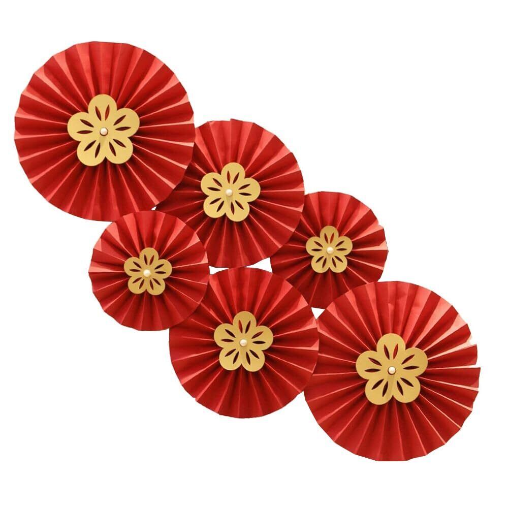 6点セット ペーパーファン パーティー装飾 3サイズ 扇子の組み合わせ デコレーション 誕生日 飾り付け セット ひな祭り/こどもの日/お正月/結婚式(フラワーパール)