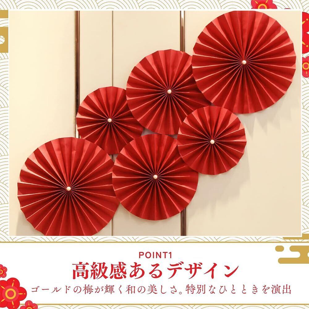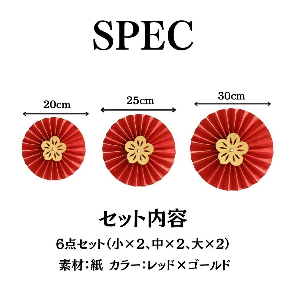 【サイズ】拡張時の直径約30cm、25cm、20cmの3種類がそれぞれ2点ずつ揃っており、素材:紙。カラー:レッド×ゴールド、合計6点セットです。