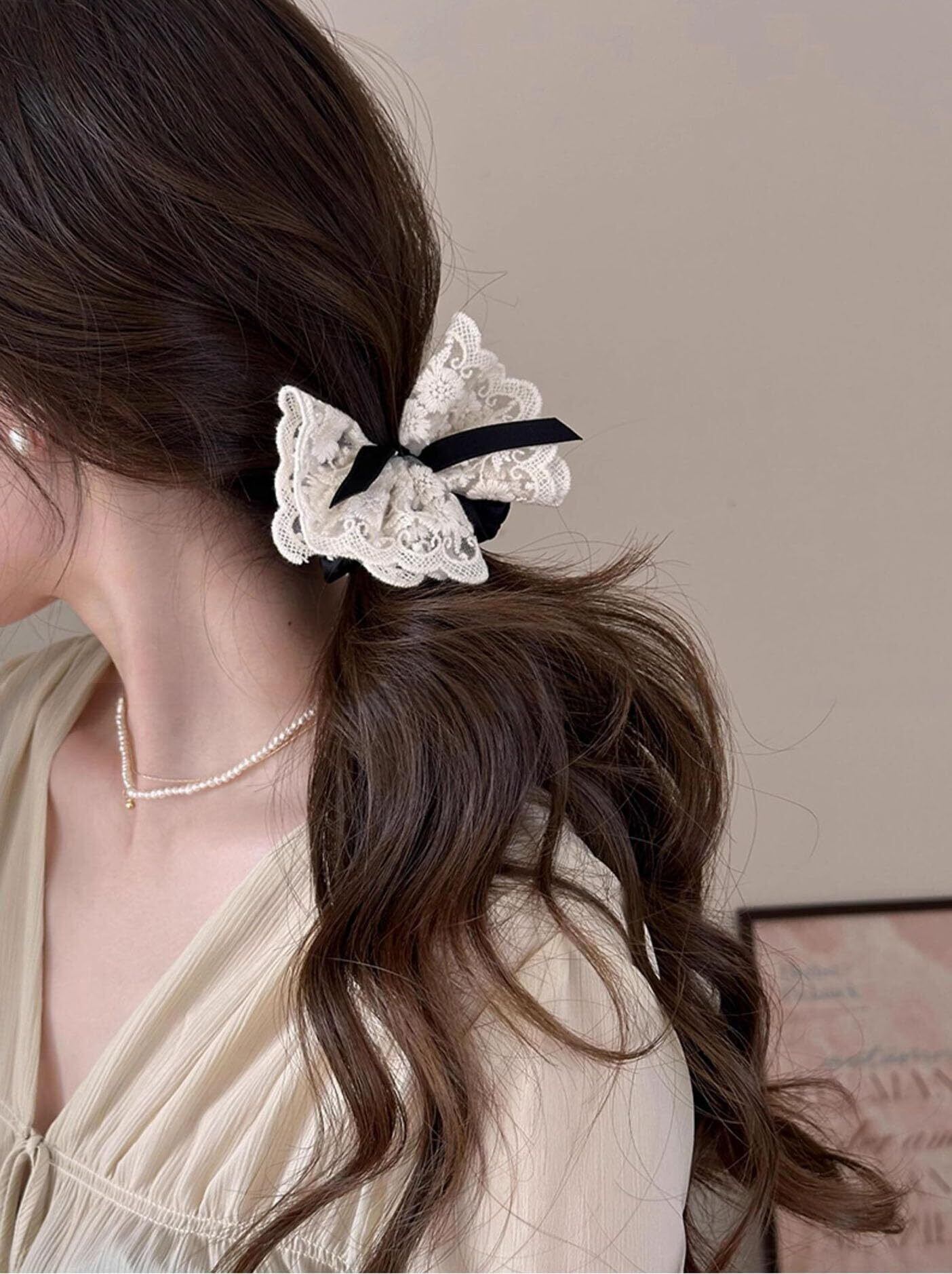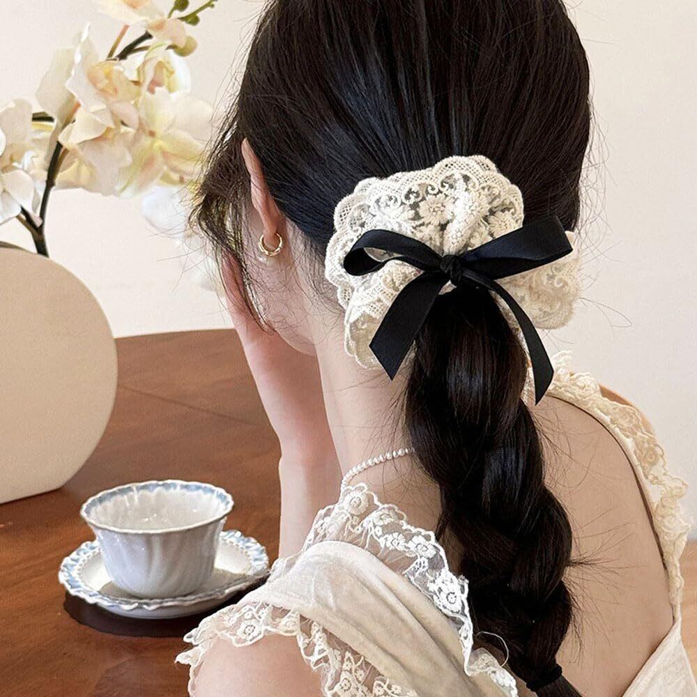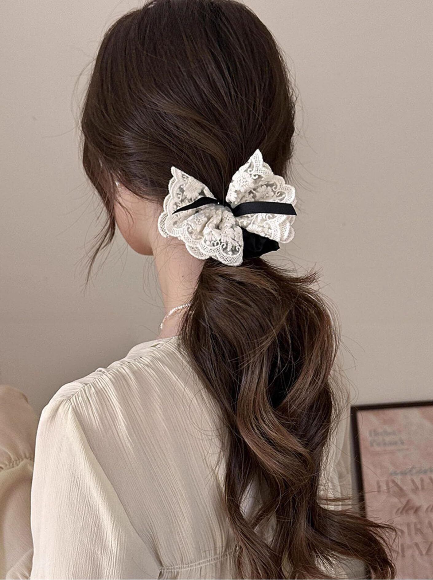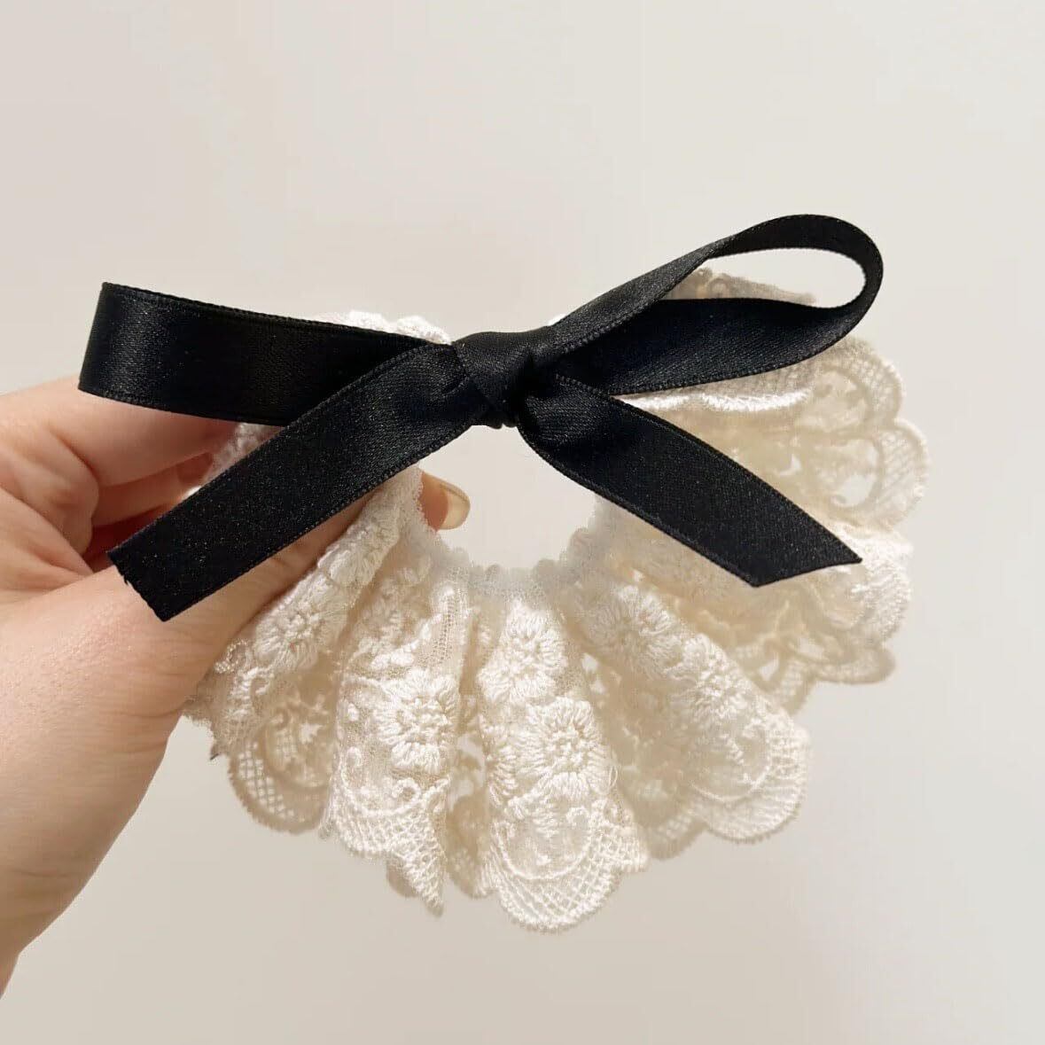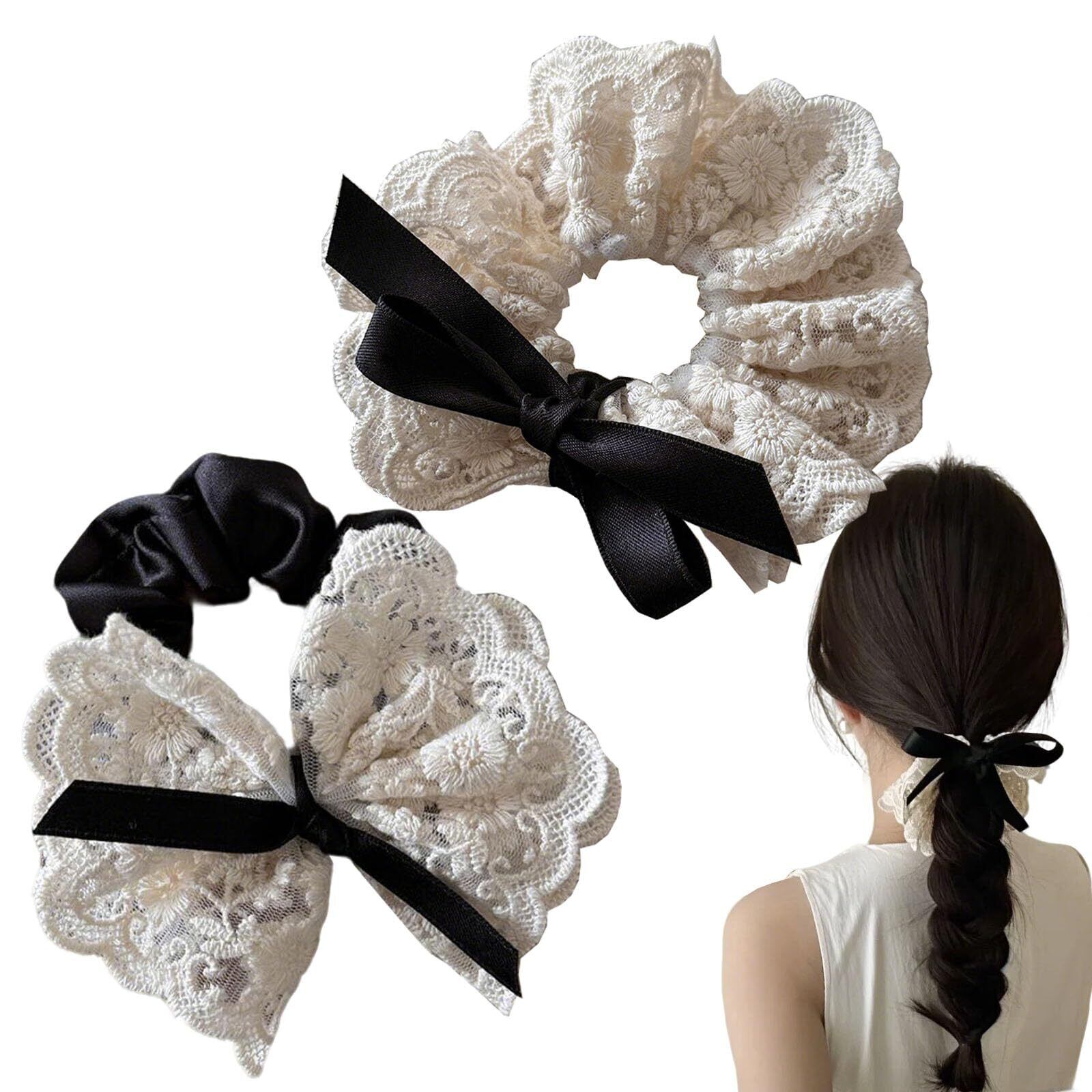 【品名】レースシュシュ2本セット。可愛くて、実用、女性に適します。デイリーにぴったりな、シンプル・定番カラーのレースヘアゴム。