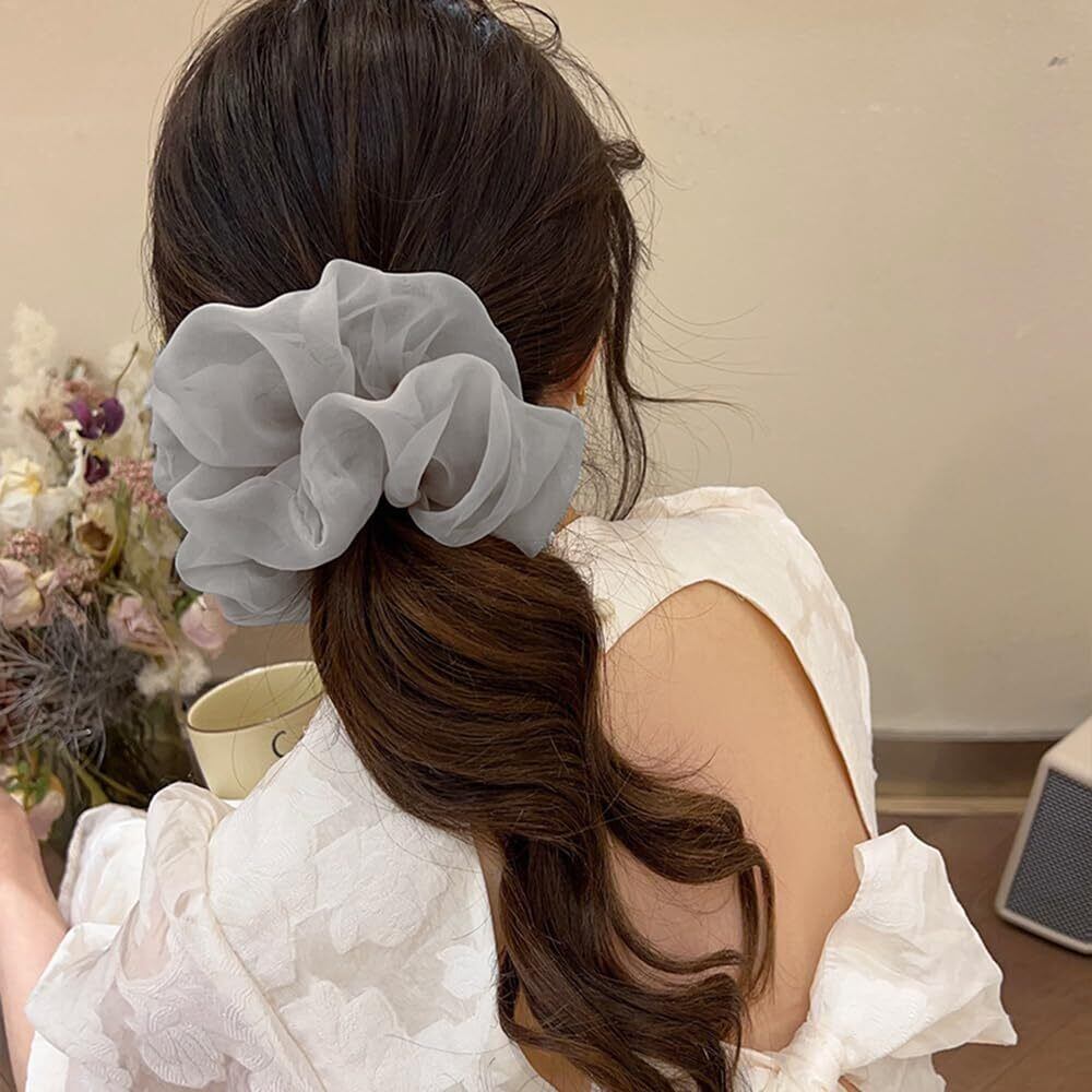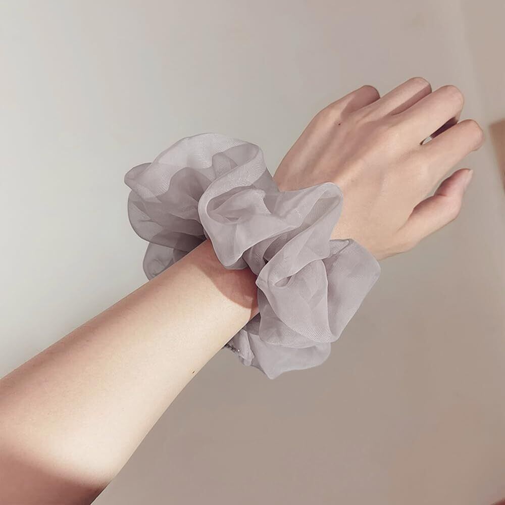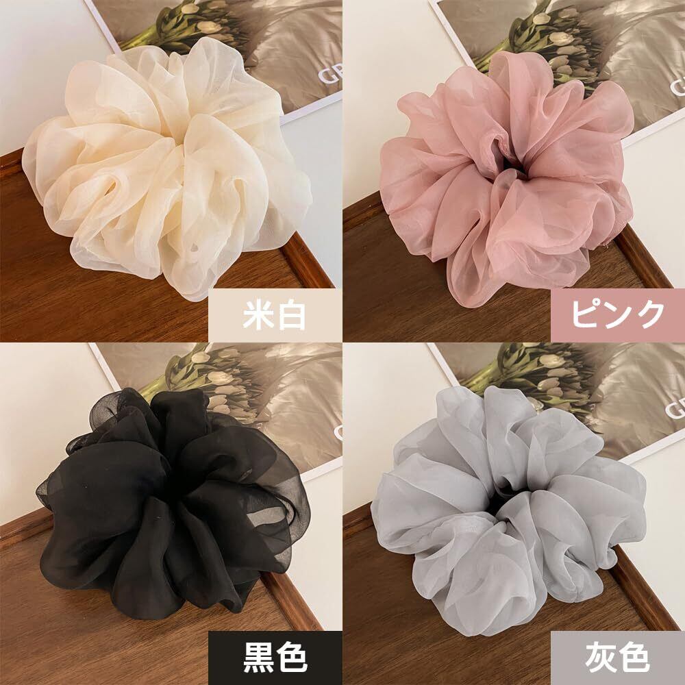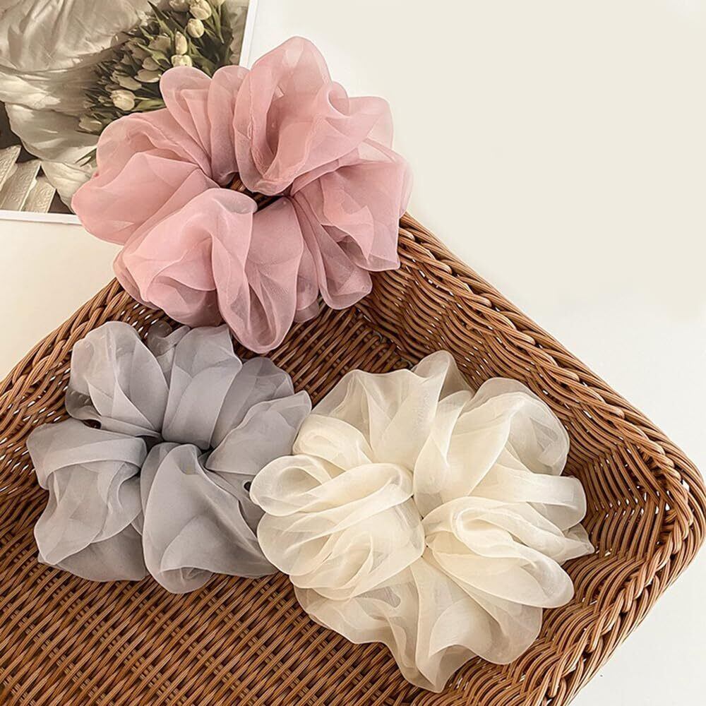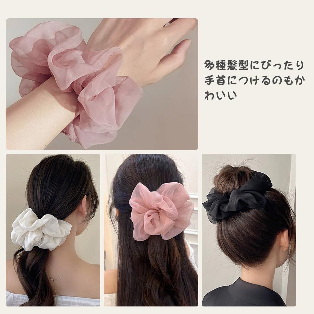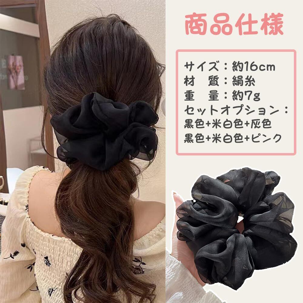 サムコス シュシュ 大きめ ヘアゴム 3色セット おしゃれな髪飾り 高弾力 絹布生地 ツルツルな触り心地 結びやすい 大人 レディース (黒+白+灰)