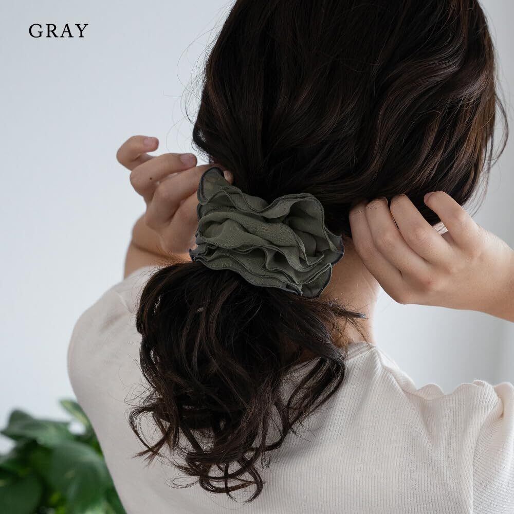 【注意事項】※ハンドメイド商品の為、サイズ・ボリューム等が一点一点異なります。※こちらのシュシュは中のゴムが透けて見える生地を使用しております。内部の縫い糸等も透けて見えております。 不良ではございませんので予めご了承の上、お買い求めくださいませ。