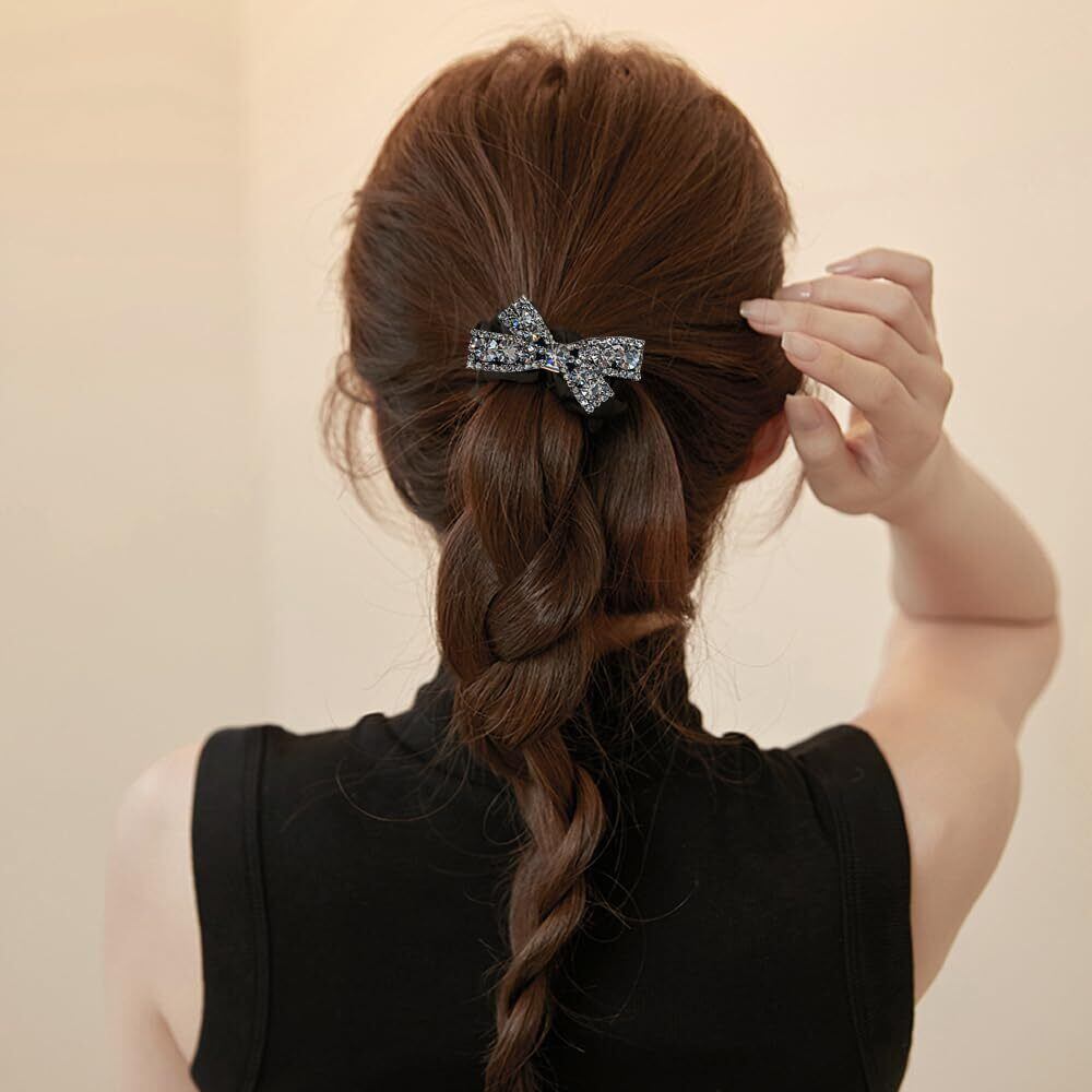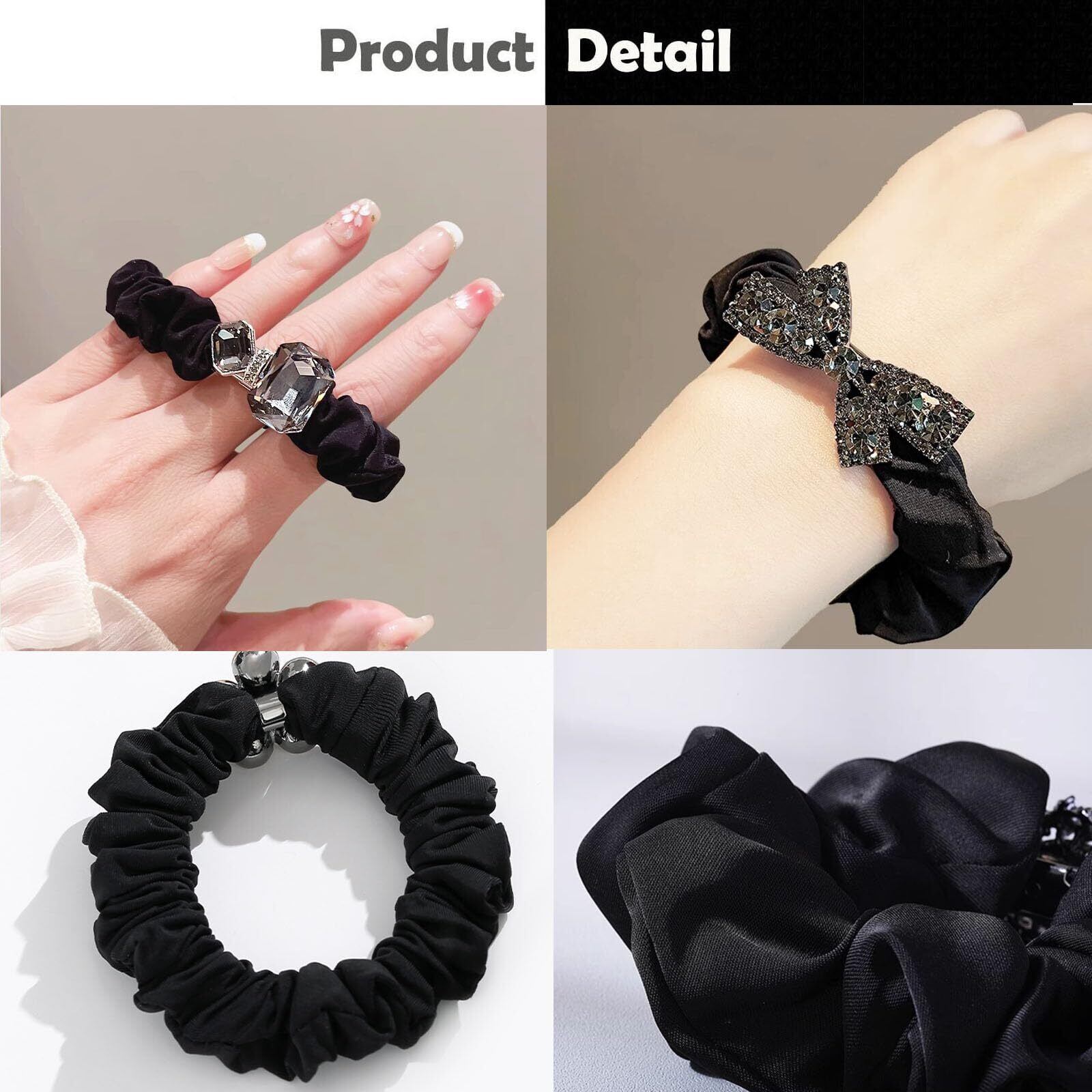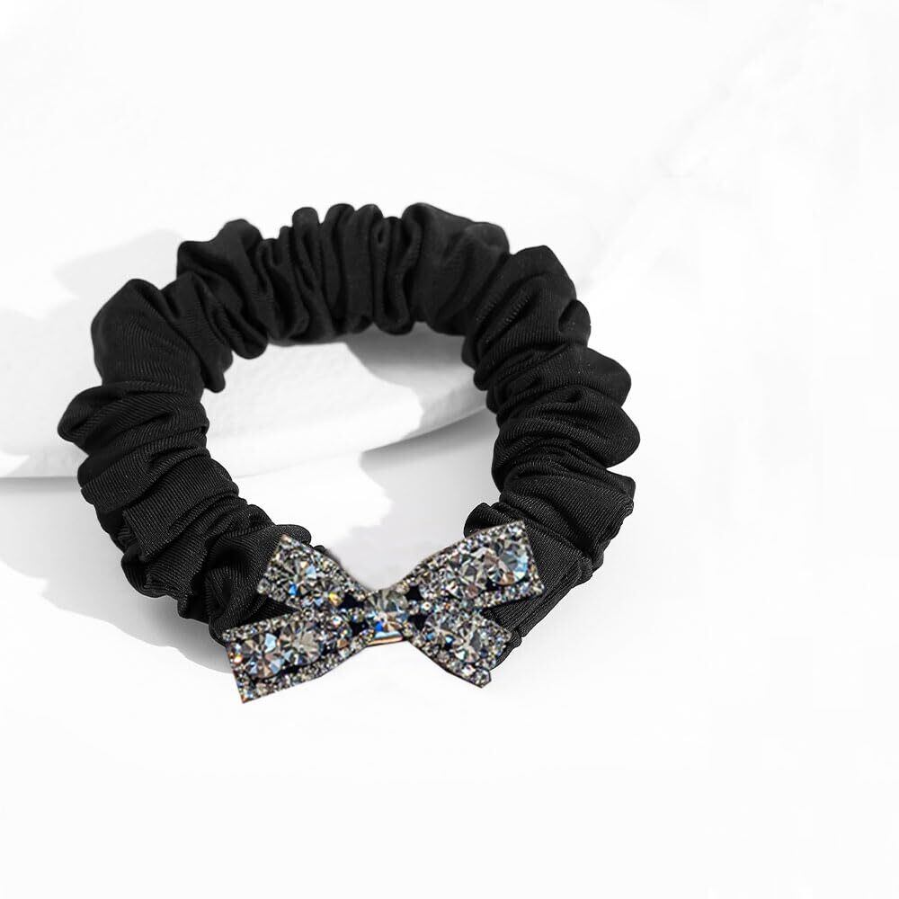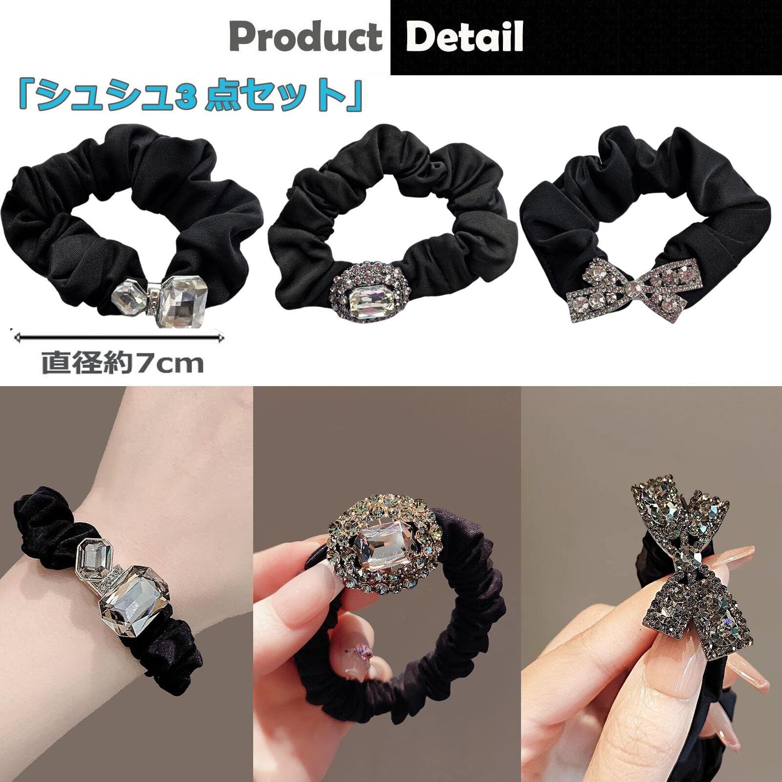 shefun シュシュ シルク パール クリスタル ヘアゴム 黒 3個セット エレガント 大人 髪ゴム サテン シルクゴム おしゃれ ボリューム レディース 髪飾り JP252 (クリスタル)