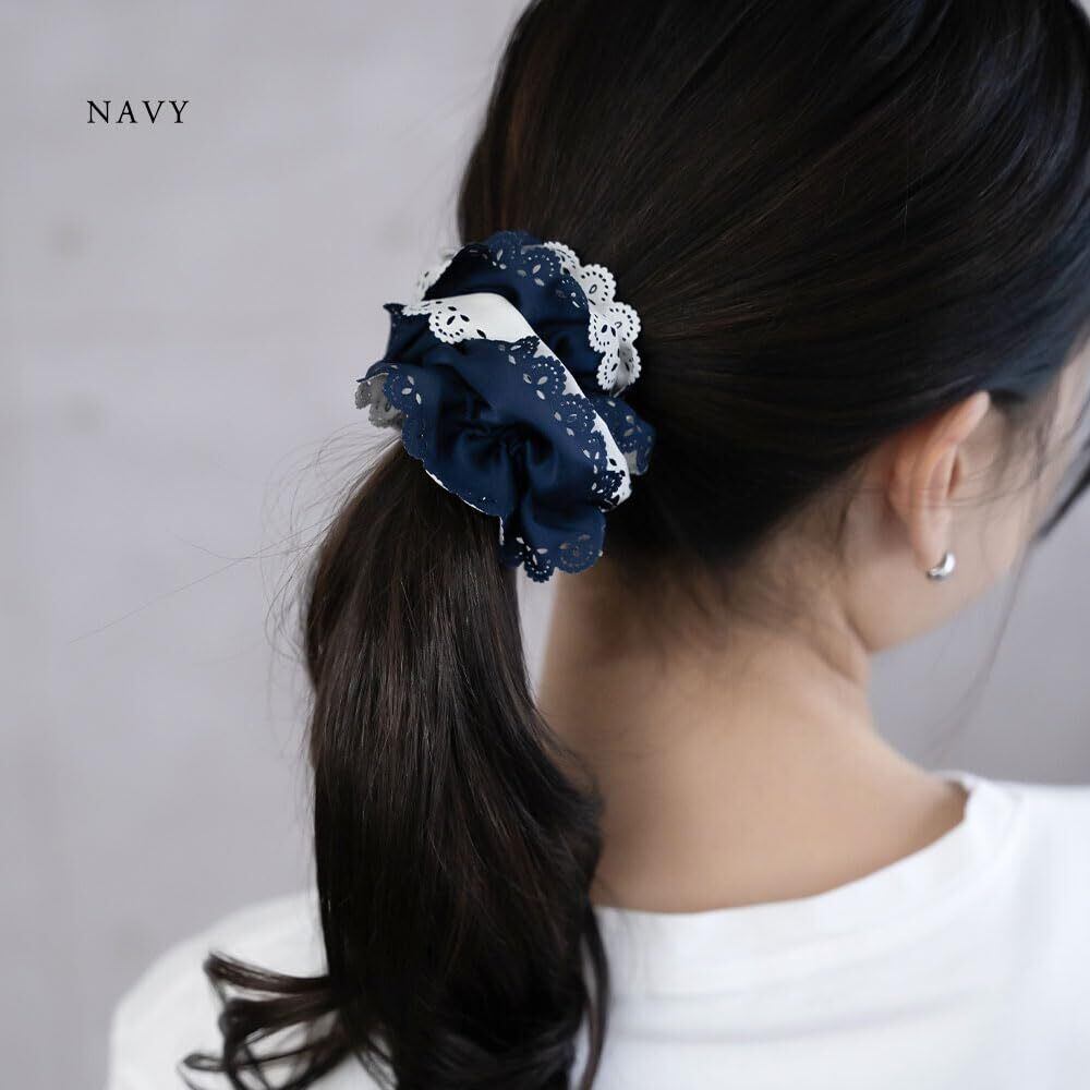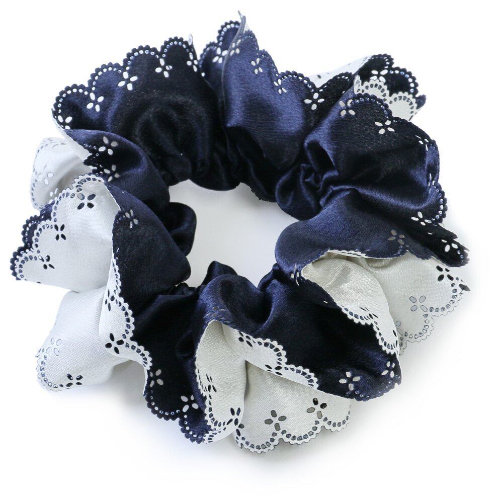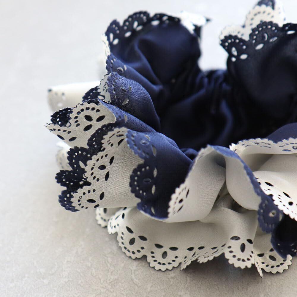 [ジュエルボックス] JewelVOX シュシュ ヘアゴム ヘアアクセサリー レディース ダブルカラー レースカット おしゃれ 大人 ネイビー