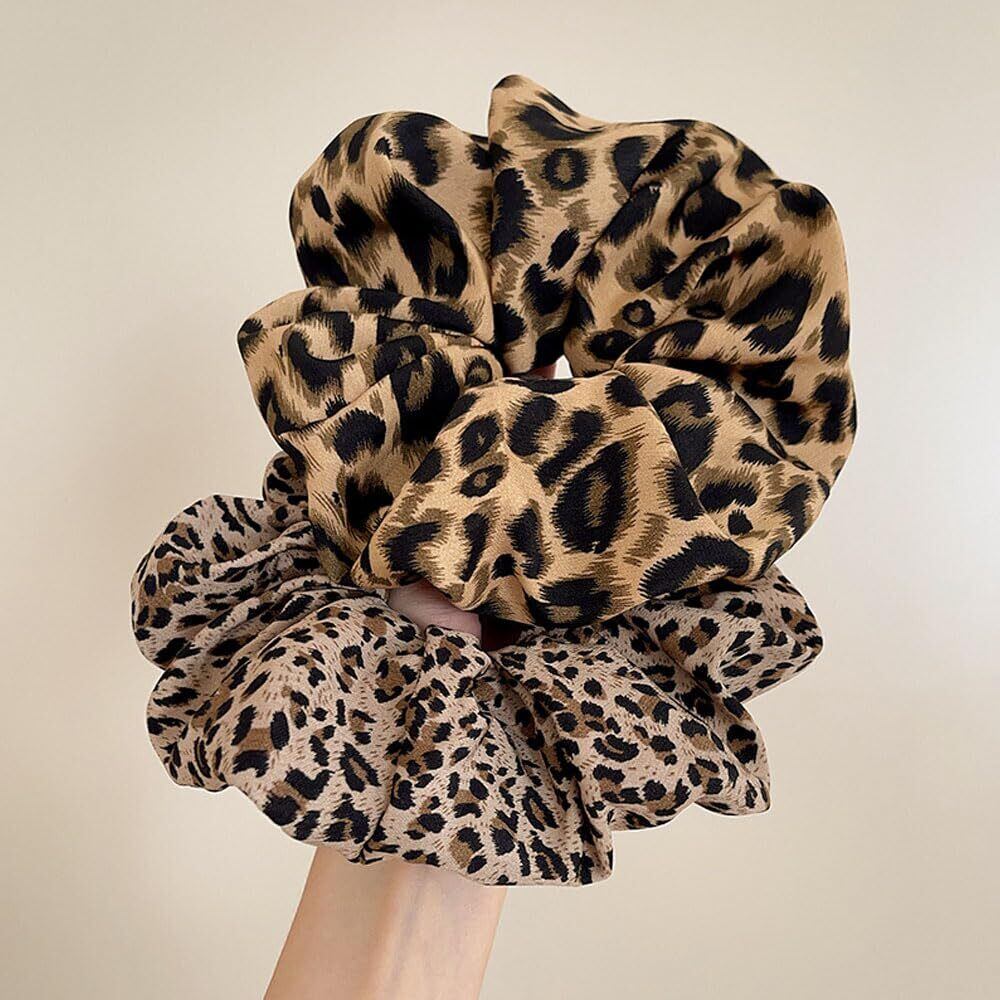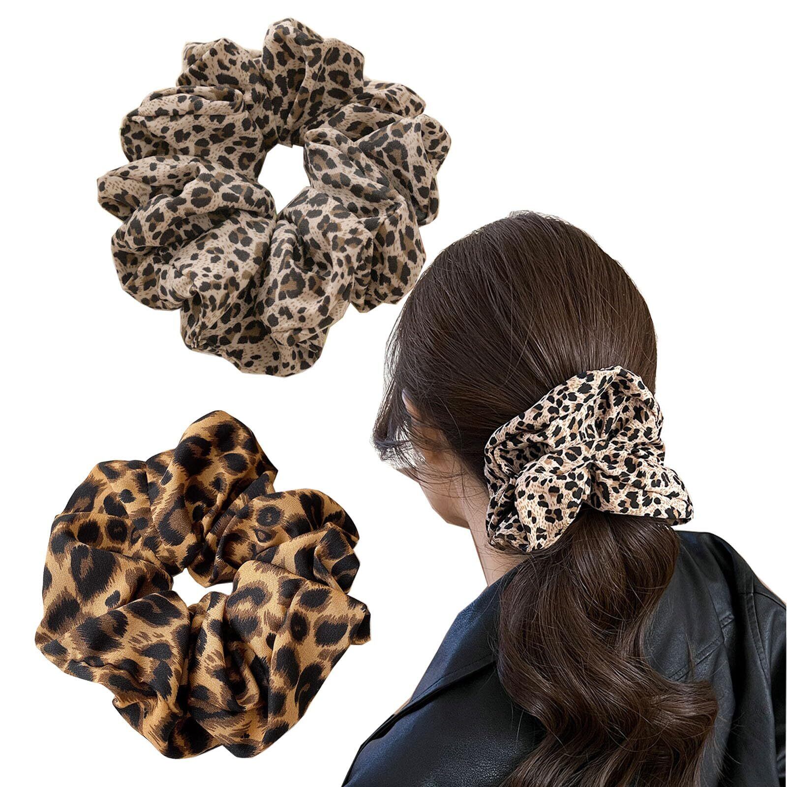shefun シュシュ シルク ヘアゴム 2個セット 大人 髪ゴム ヒョウ柄 シルクゴム おしゃれ ボリューム レディース 髪飾り JP217
