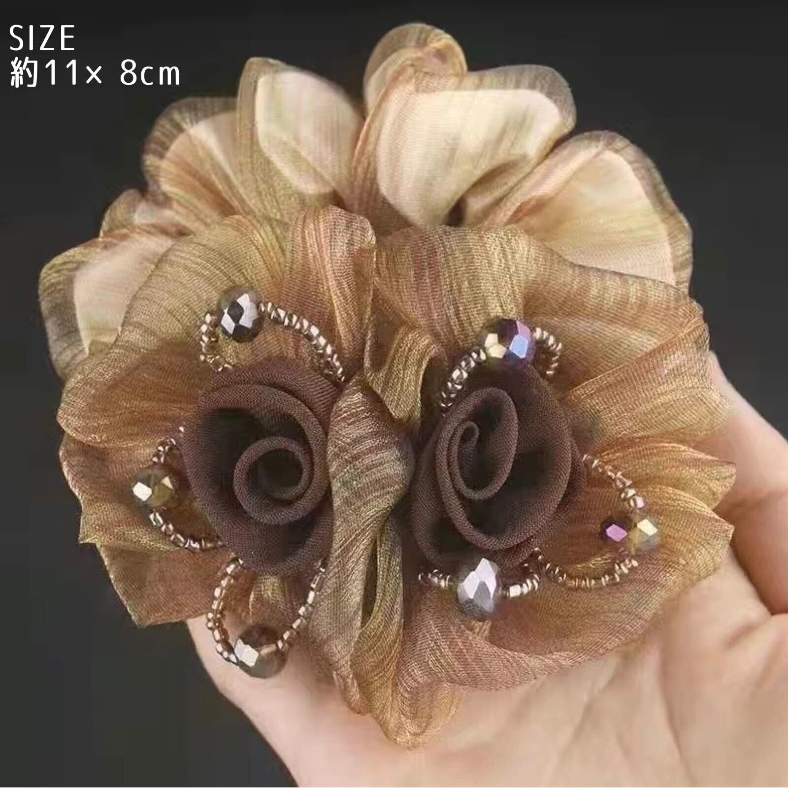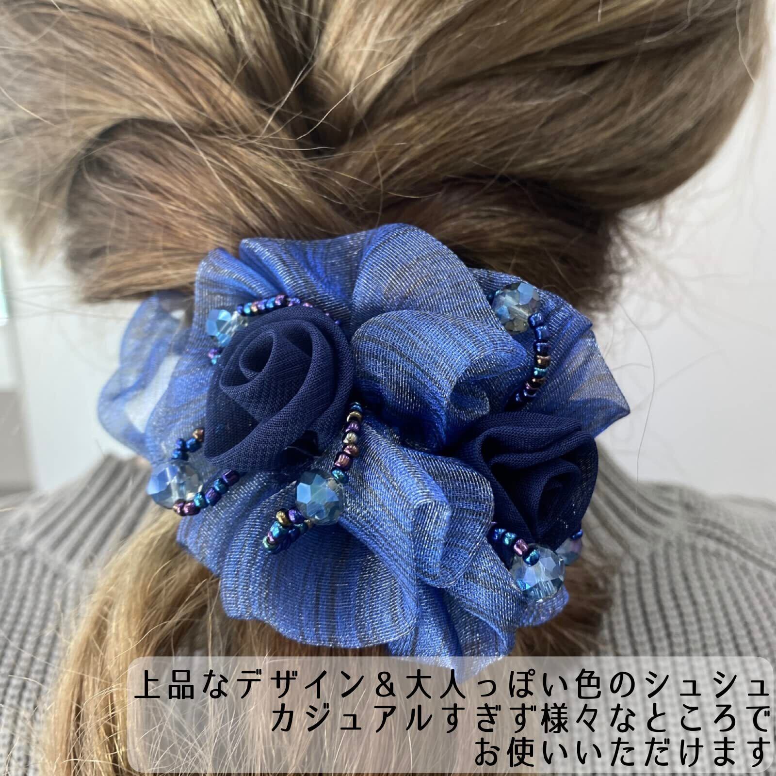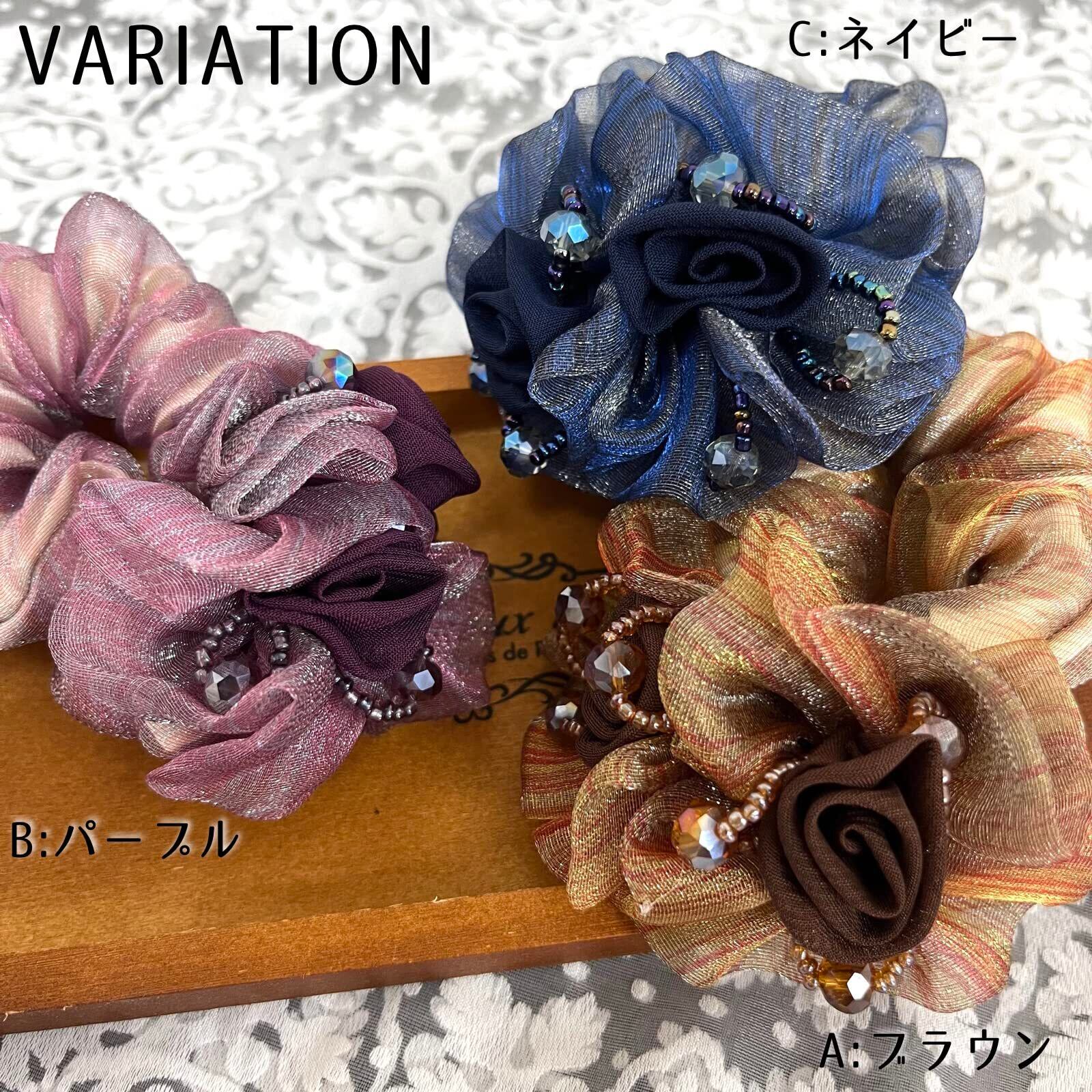 (ADOSSY) シュシュ 大人 オシャレ しっかりとまる ヘアゴム ヘアアクセサリー ふんわり 綺麗 ビーズ お花 (A)