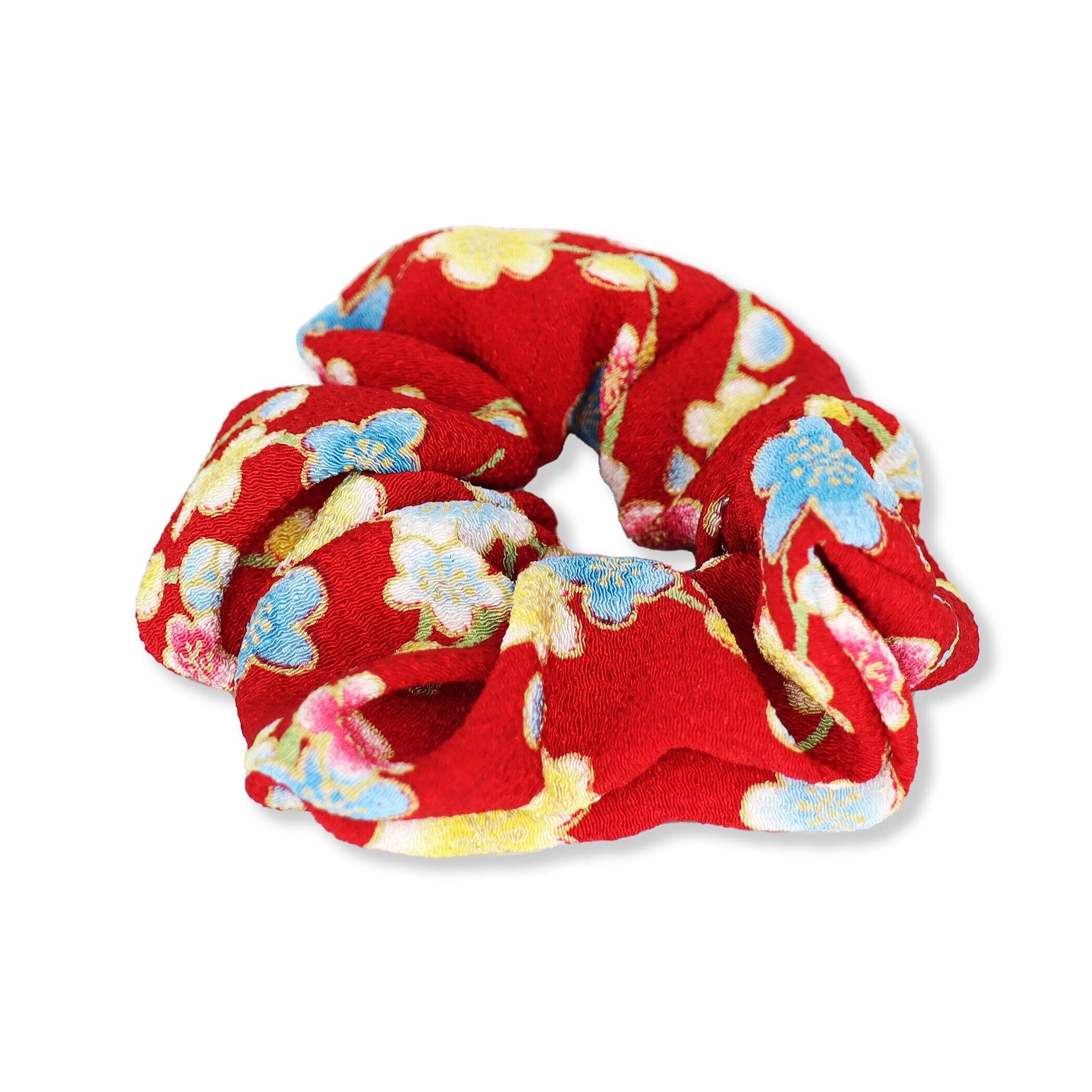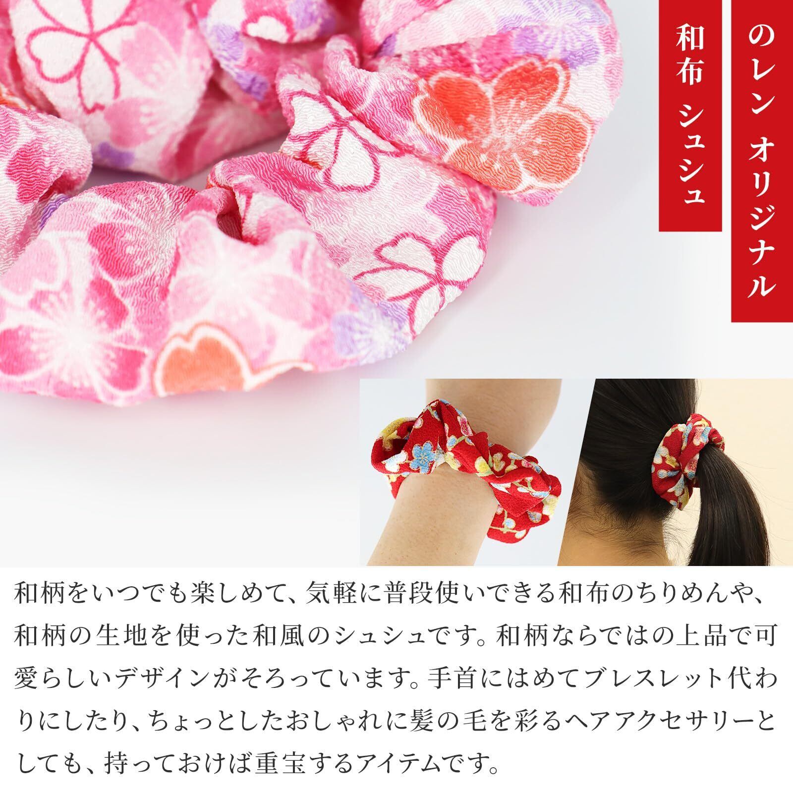 のレン ヘアゴム シュシュ 和柄 (赤/ピンク) 髪ゴム ゴム/日本製 ヘアアクセサリー ヘアアレンジ 和風 シンプル/日本土産 Japanese traditional souvenir レディース 子供 和装小物