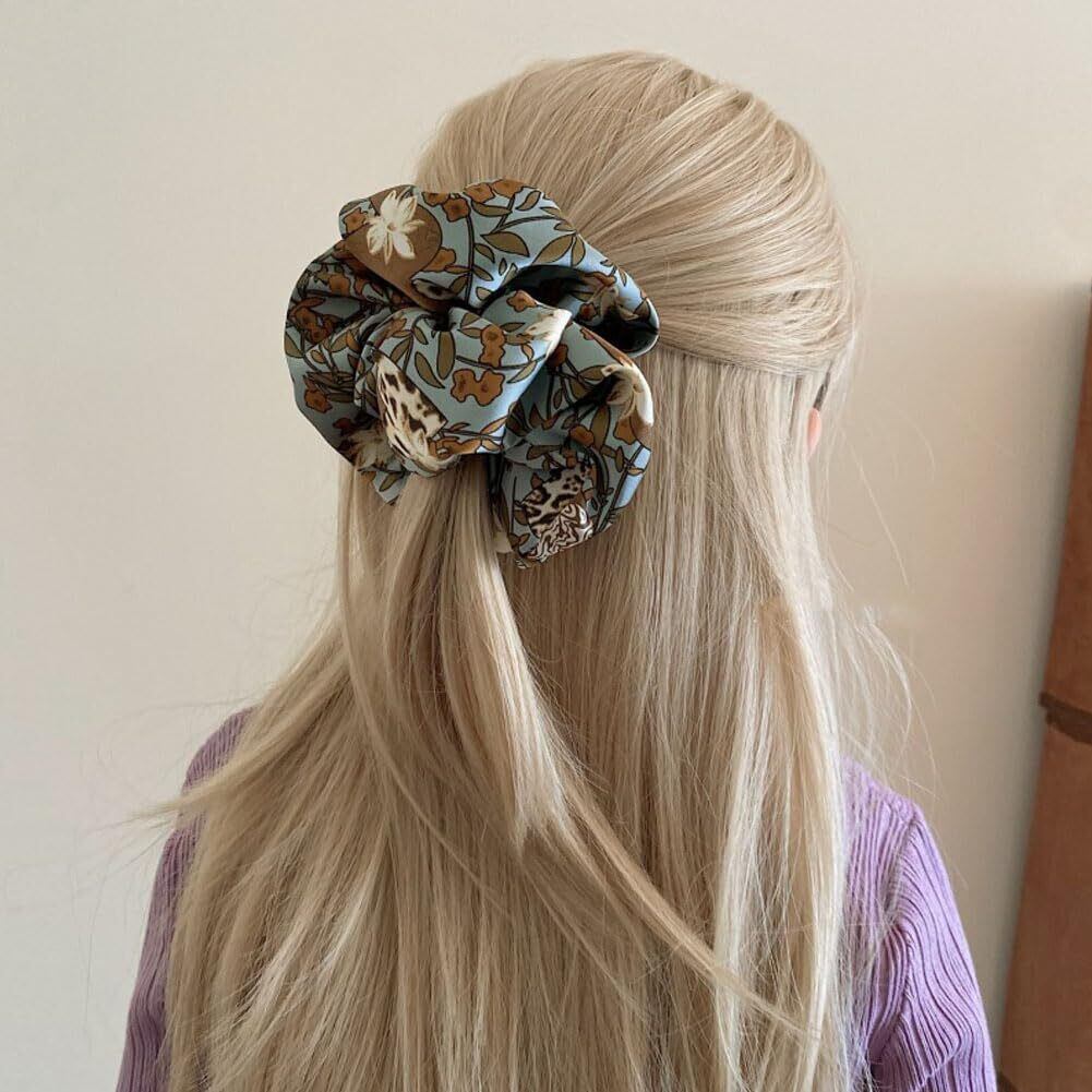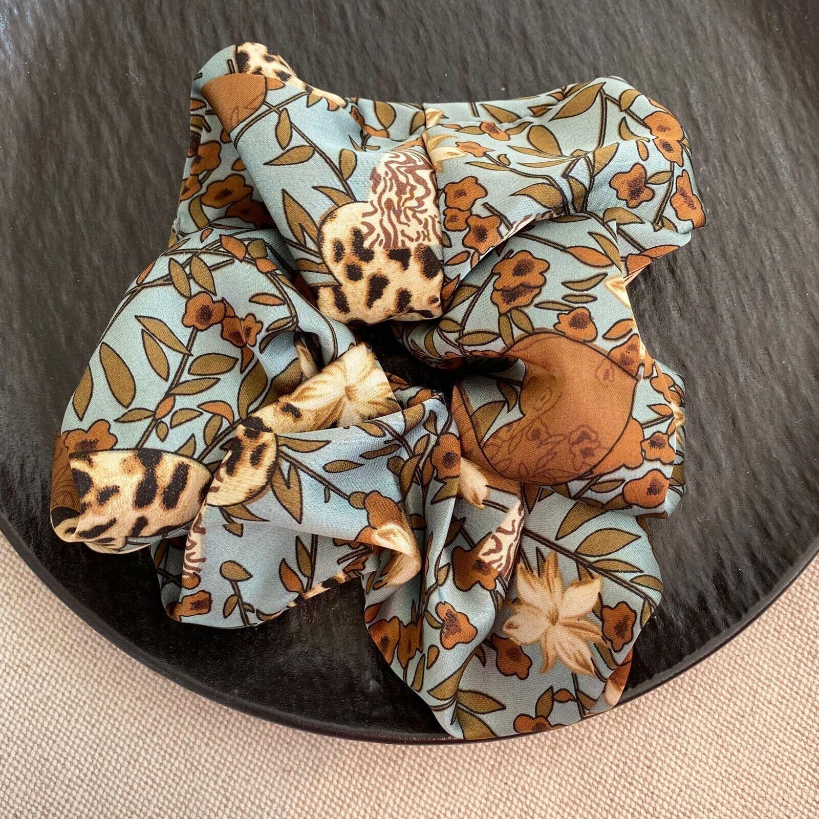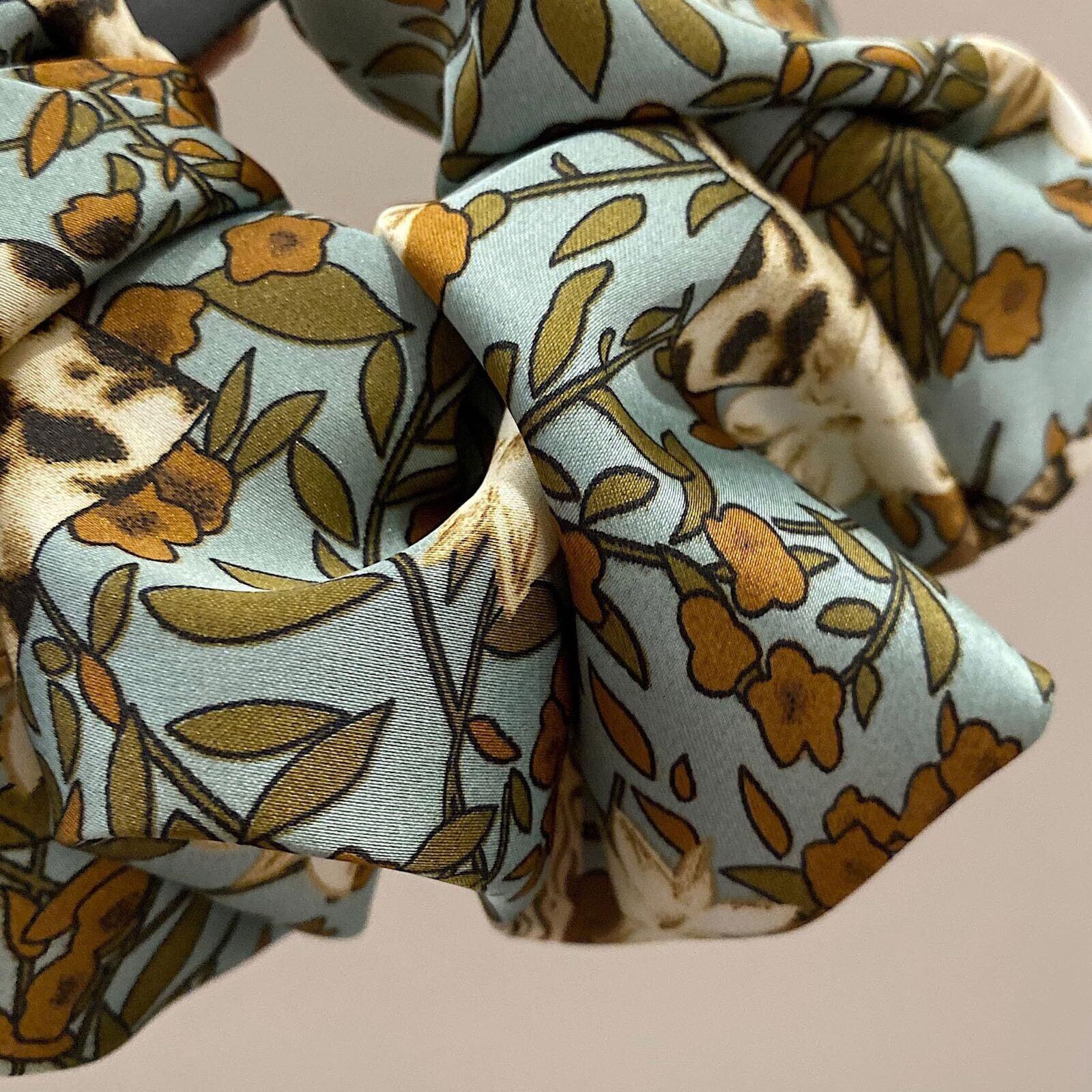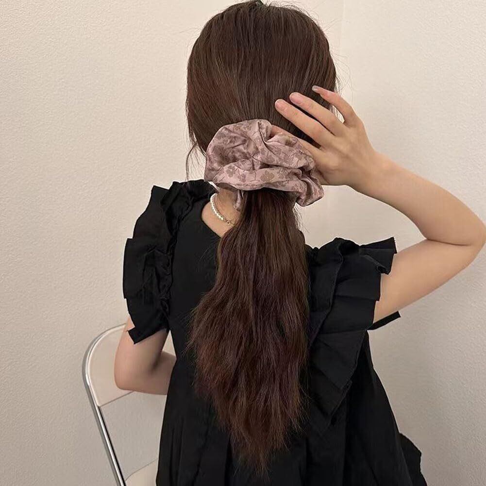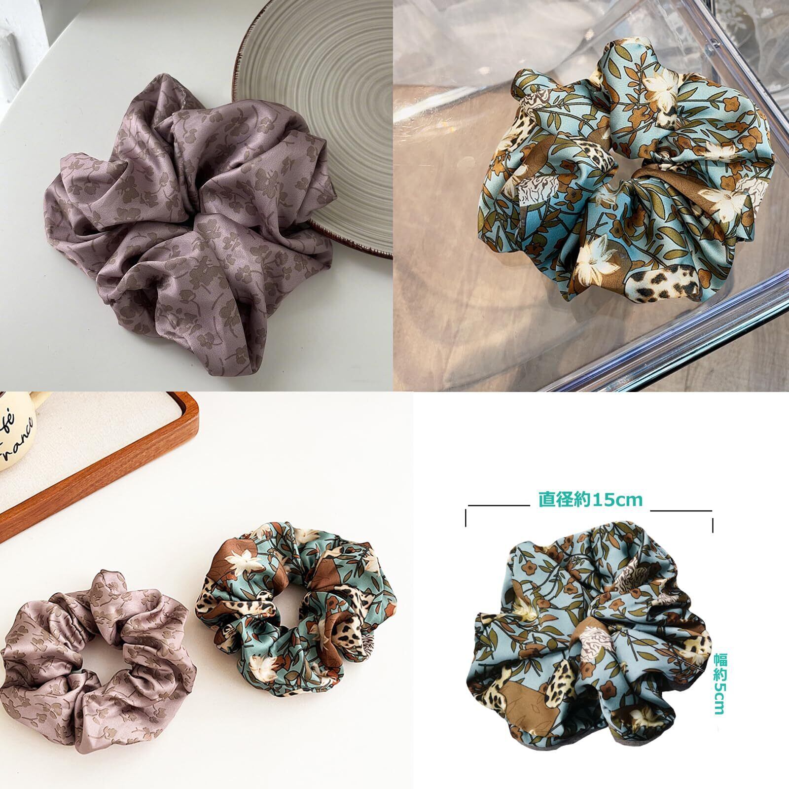 【品名】花柄シュシュ2本セット。上品な光沢もあって、軽い着け心地なのも嬉しいポイントです。可愛くて、実用、女性に適します。