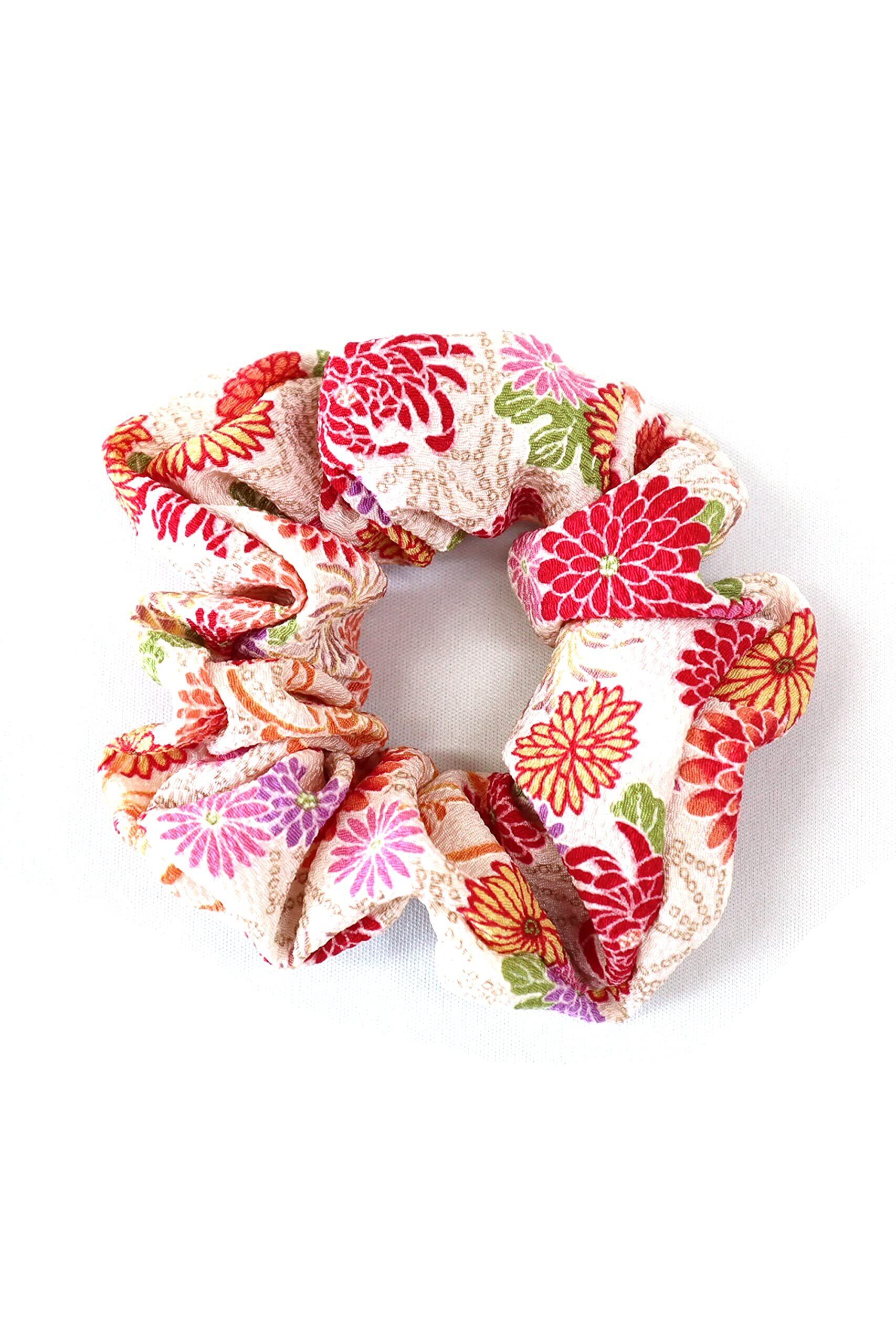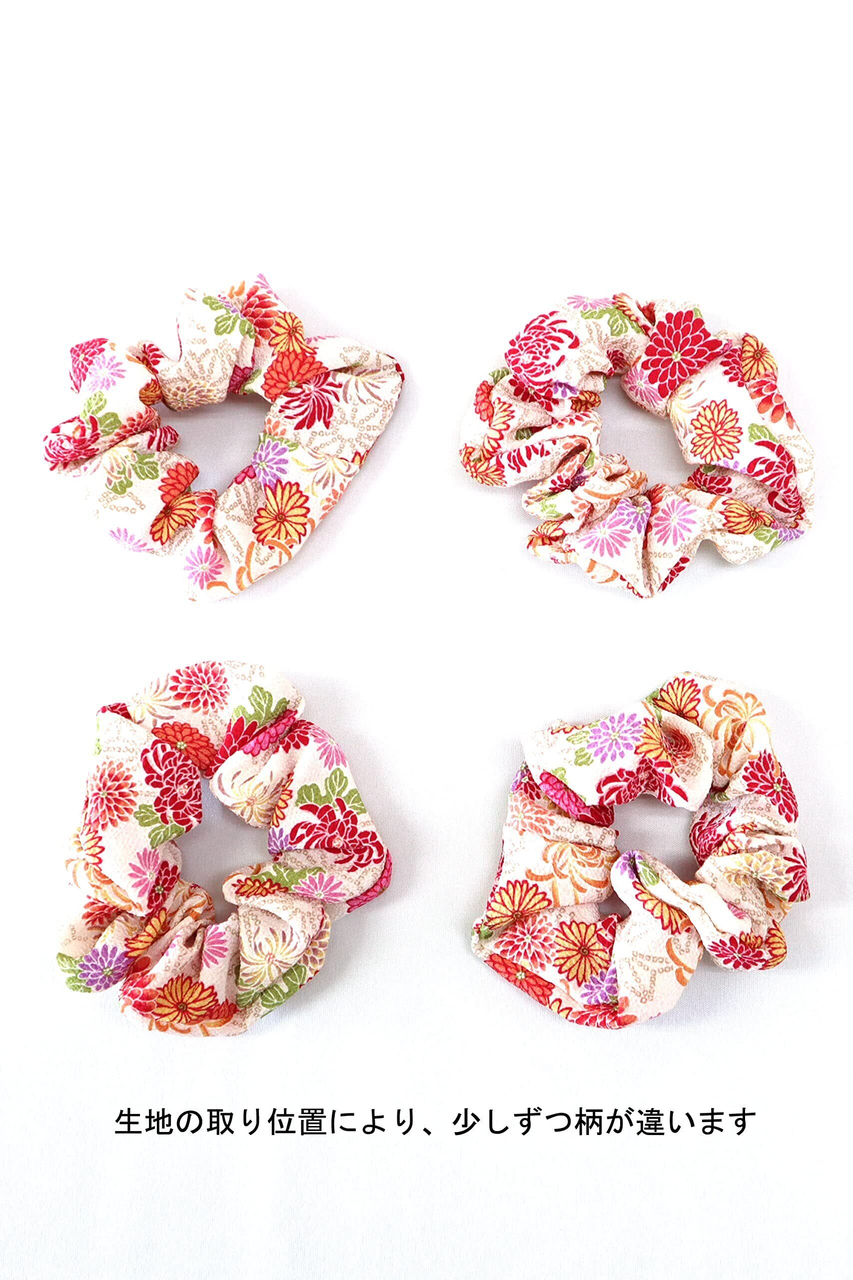 COCOLUCK 和柄 ちりめん シュシュ 髪ゴム おしゃれ ヘアアクセサリー 髪飾り ヘアゴム 日本製 小菊シリーズ1500-105 (小菊白)