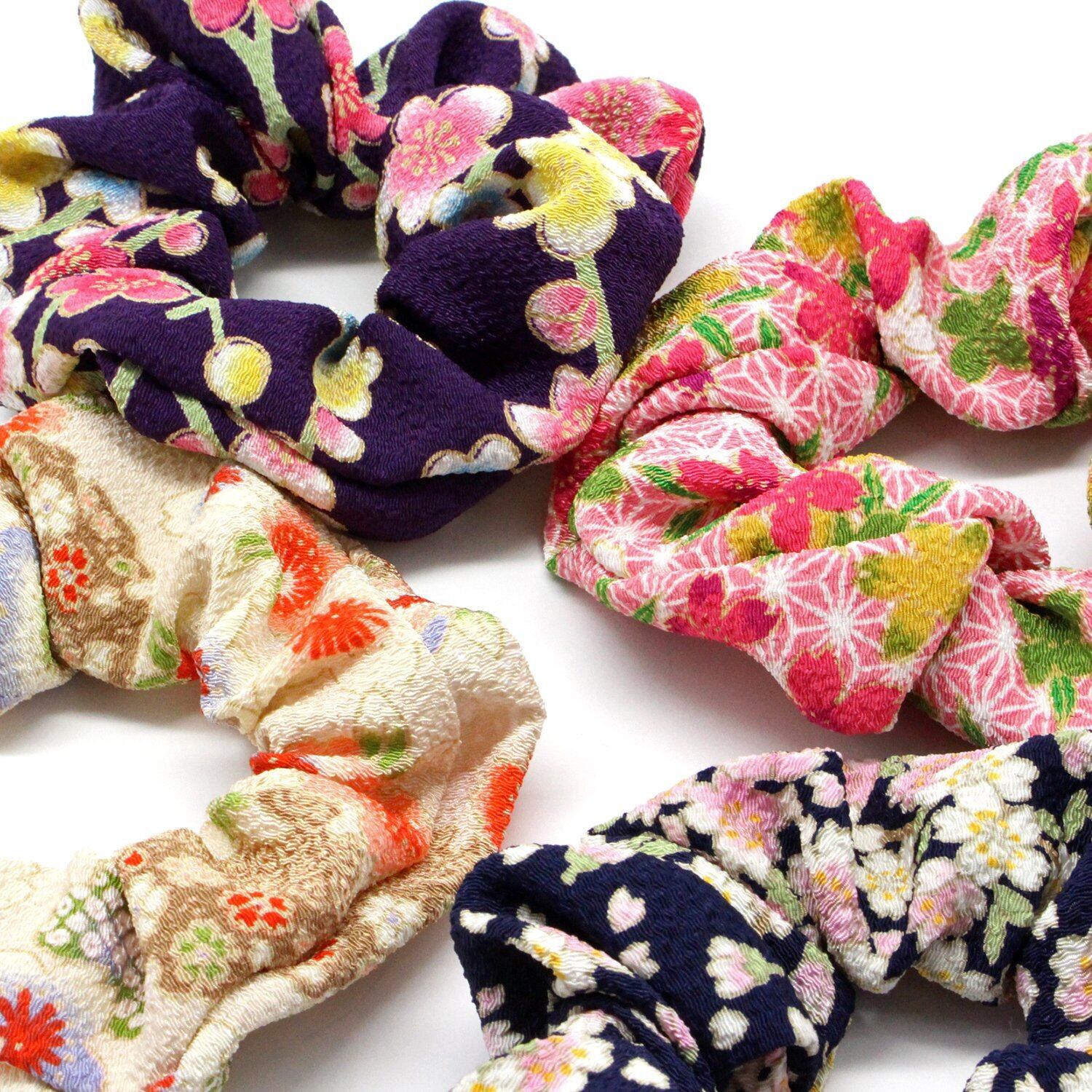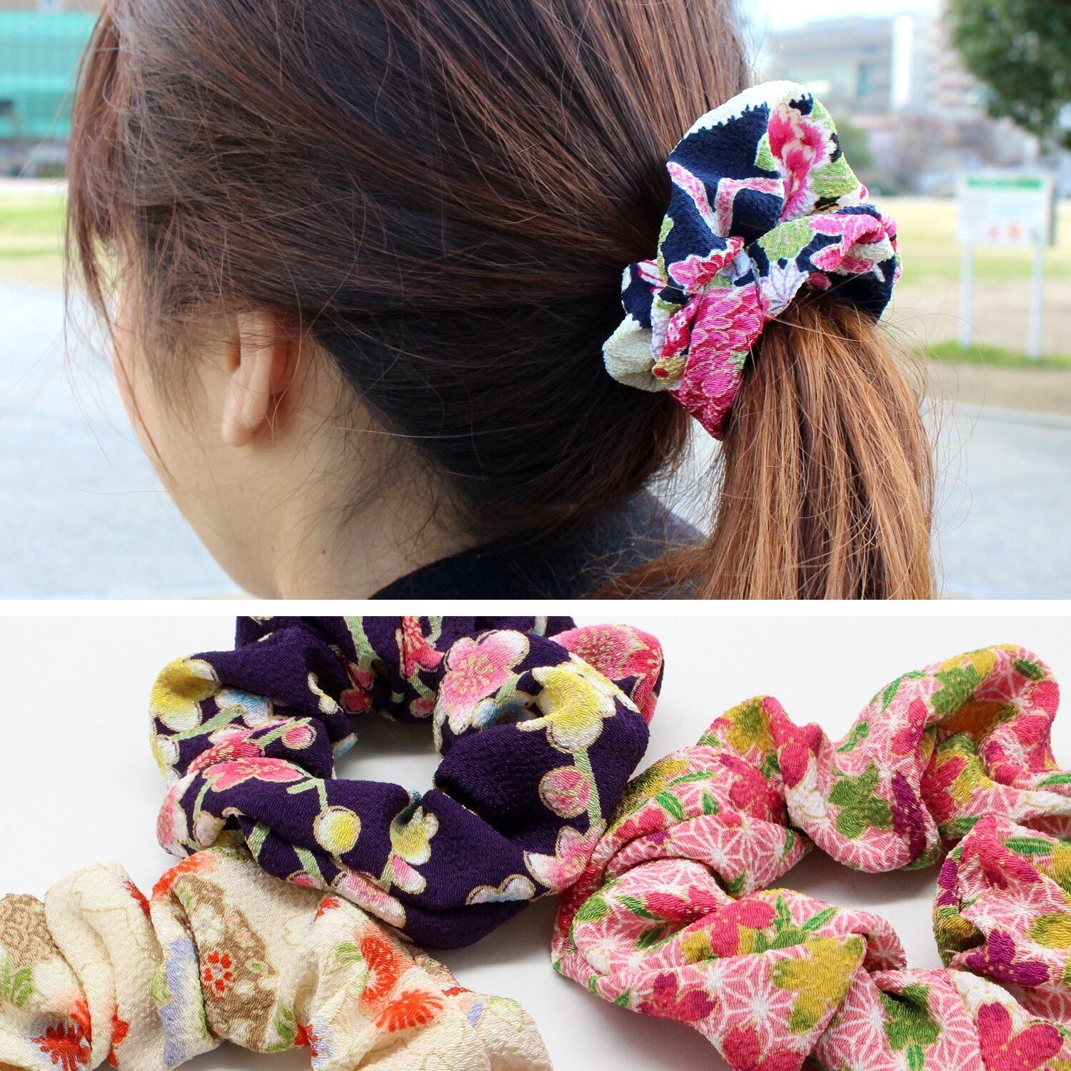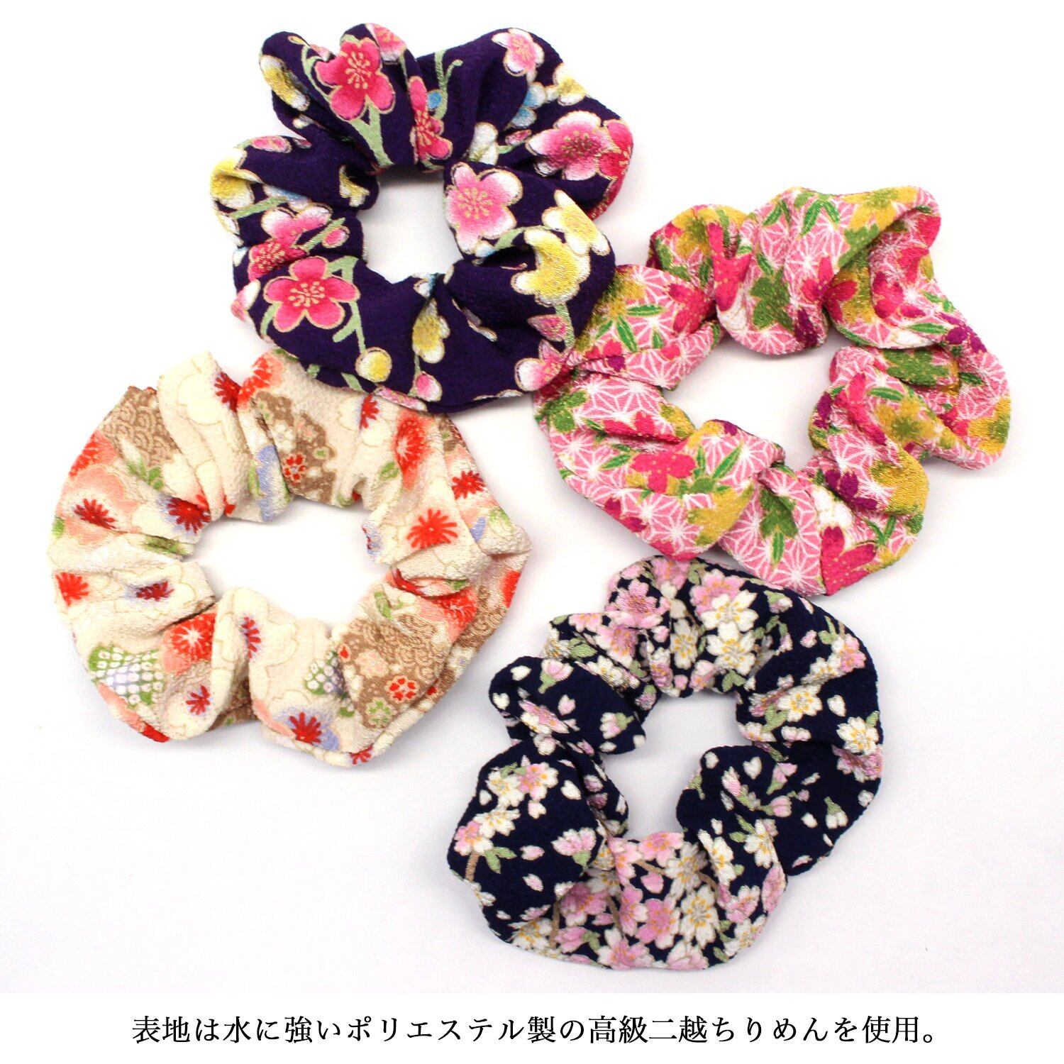 小紋工房 シュシュ 小 髪飾り ヘアゴム 二越ちりめん 京都 和KOMONO 江戸小紋 1002 (舞桜(青))