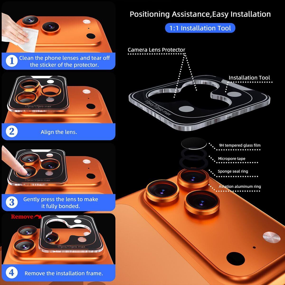 【薄型強化・高透過写真】Jurqqer for iPhone 17 Pro カメラフィルム for iPhone 17 Pro Max カメラフィルム 米軍規格 強化ガラスfor iphone17pro カメラ保護 17ProMax カメラ保護 オレンジ
